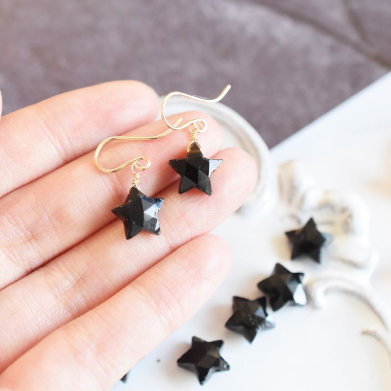 【限定数のみ】漆黒の星 ブラックオニキス スターカット サージカルステンレスフックピアス