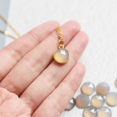 【限定数のみ】ふんわり柔らか グレージュ グレーオニキスカット ラウンドカボション サージカルステンレス40cmネックレス [N2794]