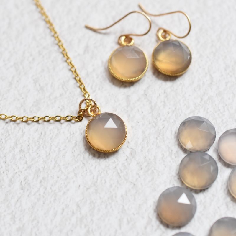 【限定数のみ】ふんわり柔らか グレージュ グレーオニキスカット ラウンドカボション サージカルステンレス40cmネックレス