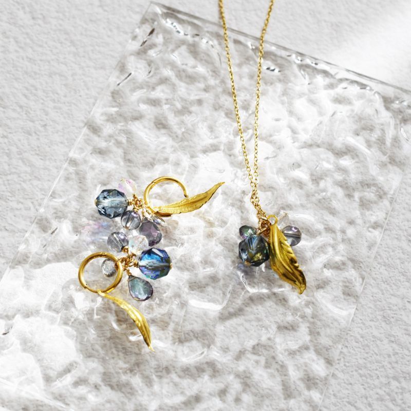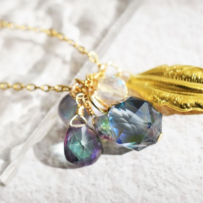 【限定数のみ】オーラクリスタル & ミスティッククォーツトパーズ リーフチャーム サージカルステンレス50cm