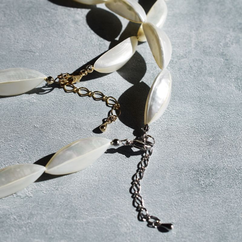 【限定数のみ】シェルパール(トロカシェル) 連なり三日月 ショートネックレス約46cm+5cm