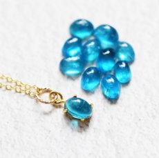 【限定数のみ】マダガスカル産 ネオンブルーアパタイト ミニカボション サージカルステンレスネックレス40cm