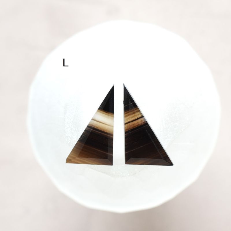 秋の新作【選べる】秋冬にときめくブラウン バンデッドアゲート トライアングル サージカルステンレスシルバーフックピアス [P0963]