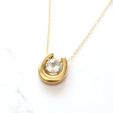 秋の新作【限定数のみ】宝石質 ホワイトトパーズ コンケーブカット 馬蹄チャーム 14KGFネックレス40cm [N2864]
