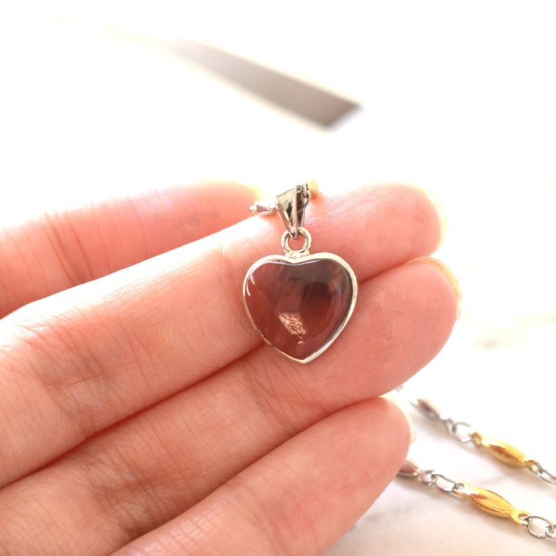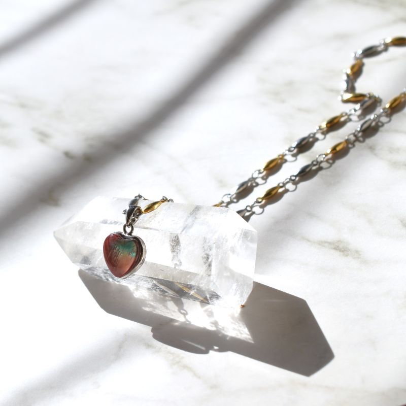 初春の新作【1点もの・A】チベット産アンデシン ハート ペンダント サージカルステンレスネックレス45cm