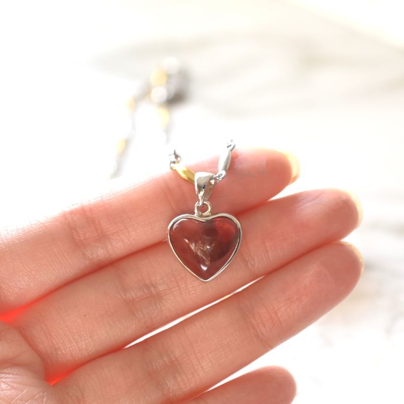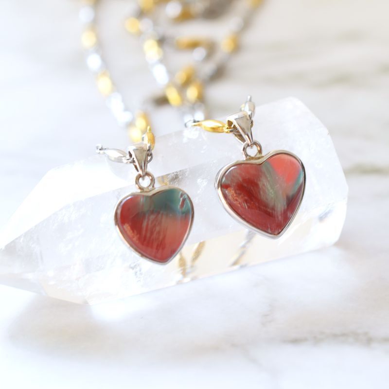 初春の新作【1点もの・B】チベット産アンデシン ハート ペンダント サージカルステンレスネックレス45cm