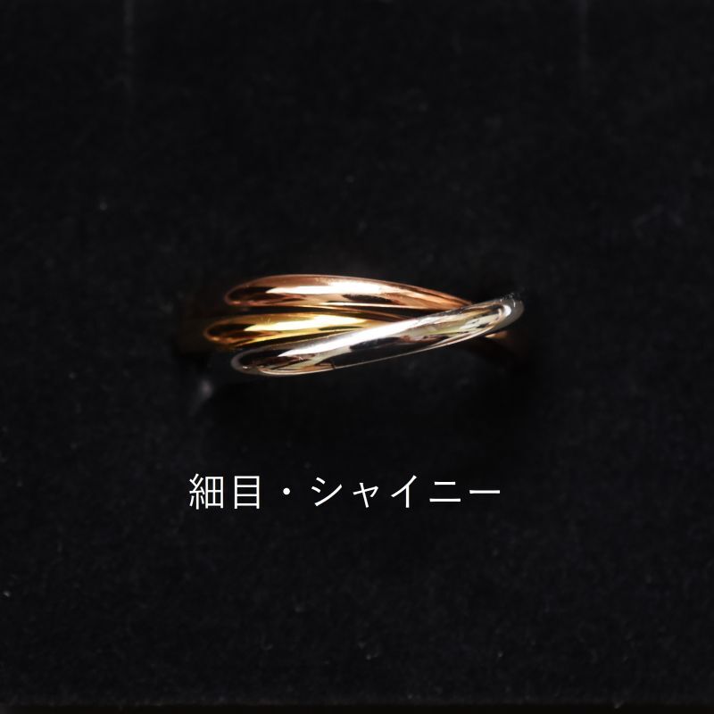 3色を3連リングにしたシンプルな指輪です