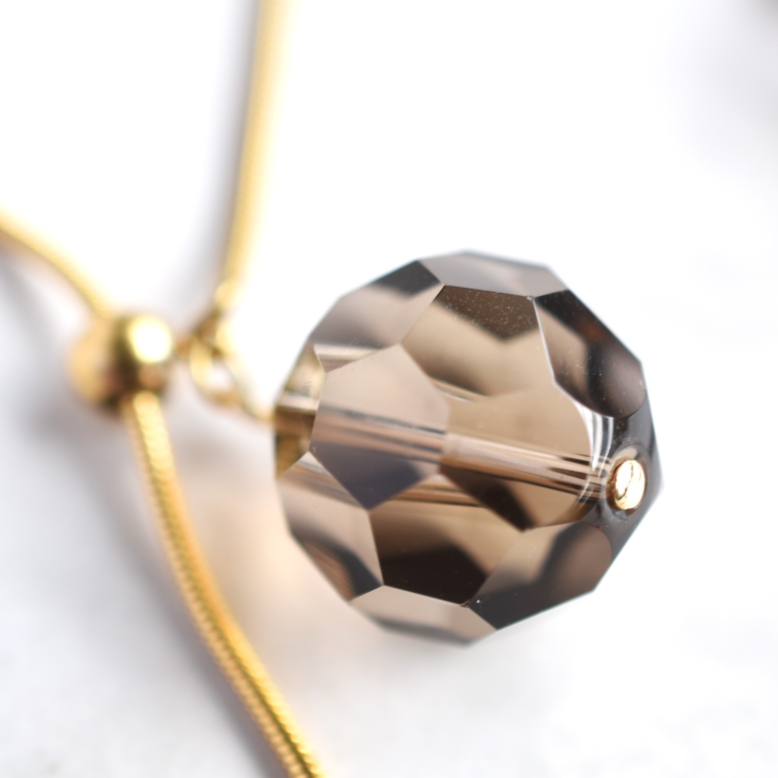 秋の新作【金属アレルギー対応・2WAY】バッキーボールスモーキークォーツ Y字 サージカルステンレス ロングネックレス75cm
