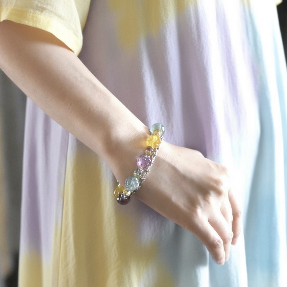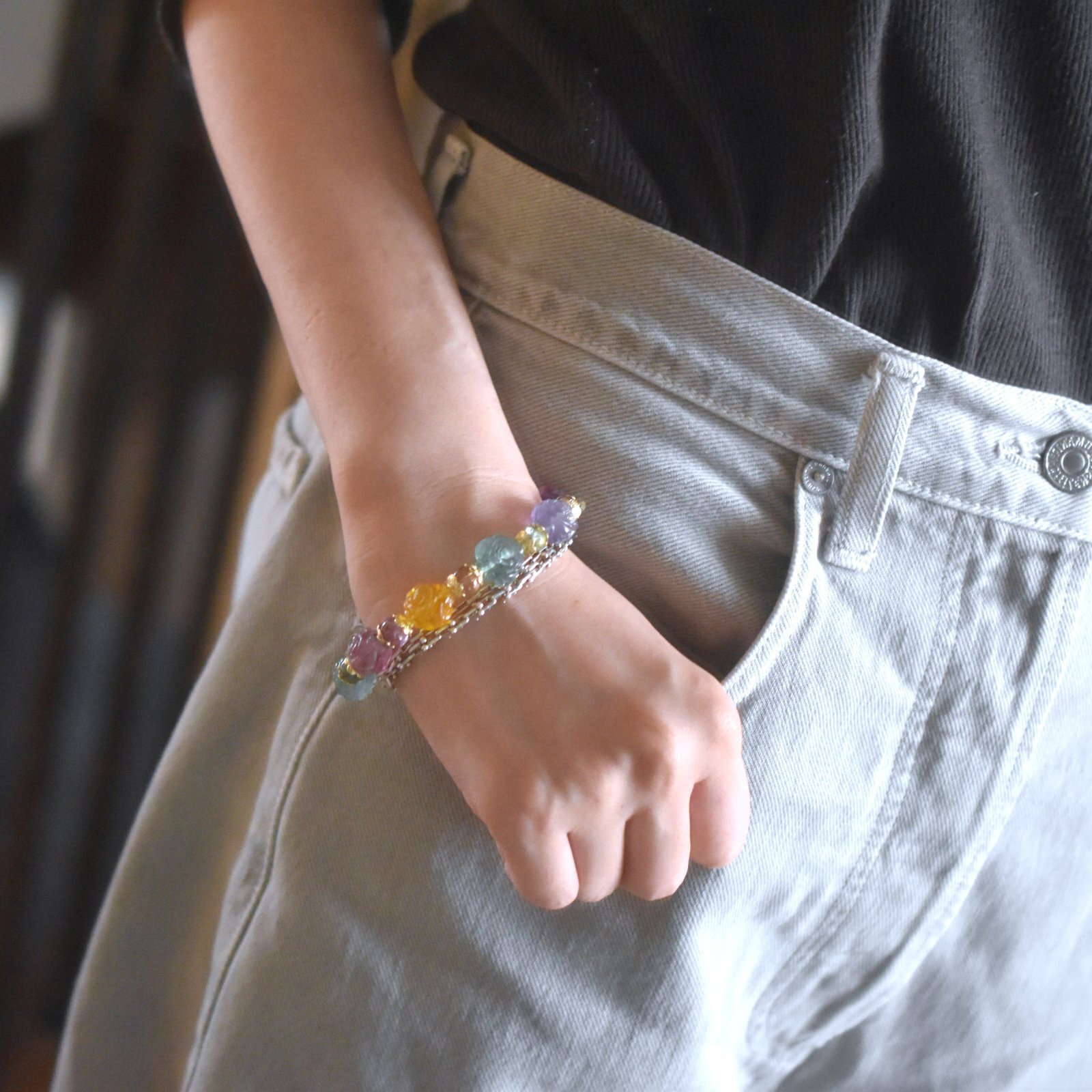 夏の新作【残り6】薔薇の季節に キャンディーカラー♪ フローライト ローズ お守り ブレスレット [0000]