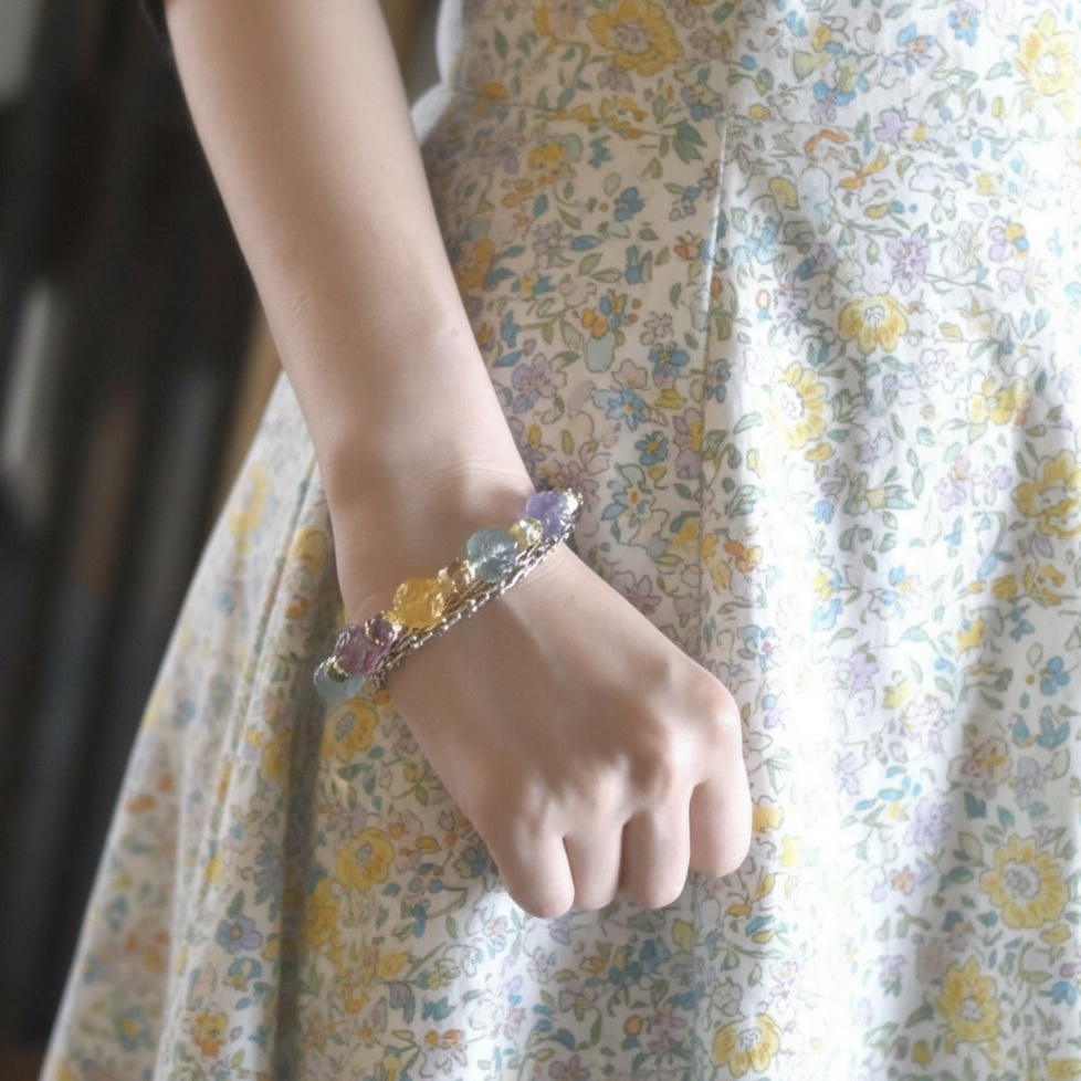 夏の新作【残り6】薔薇の季節に キャンディーカラー♪ フローライト ローズ お守り ブレスレット