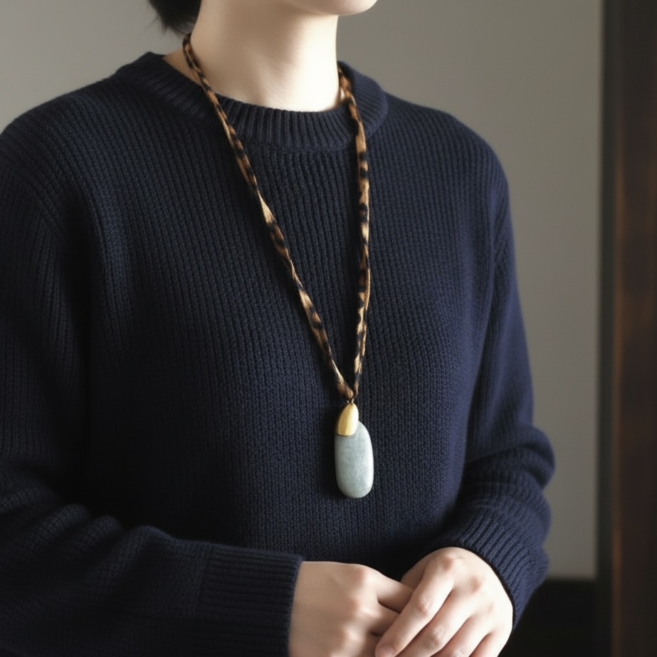 レオパード柄のコードが個性的なネックレスです