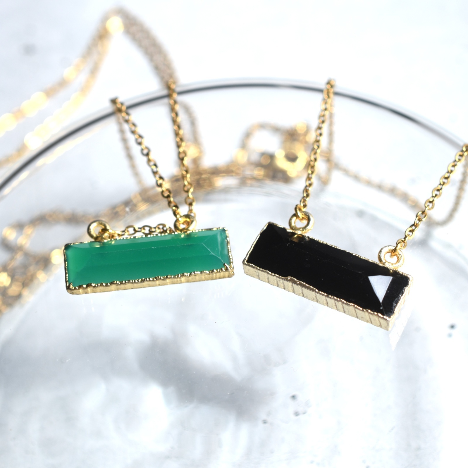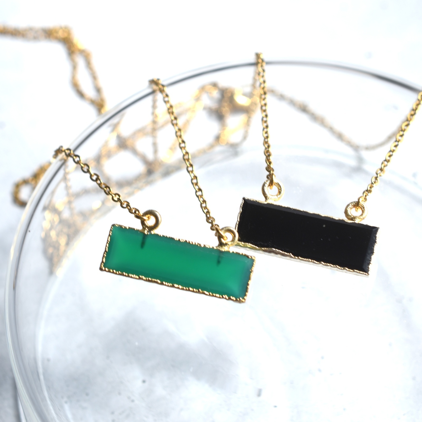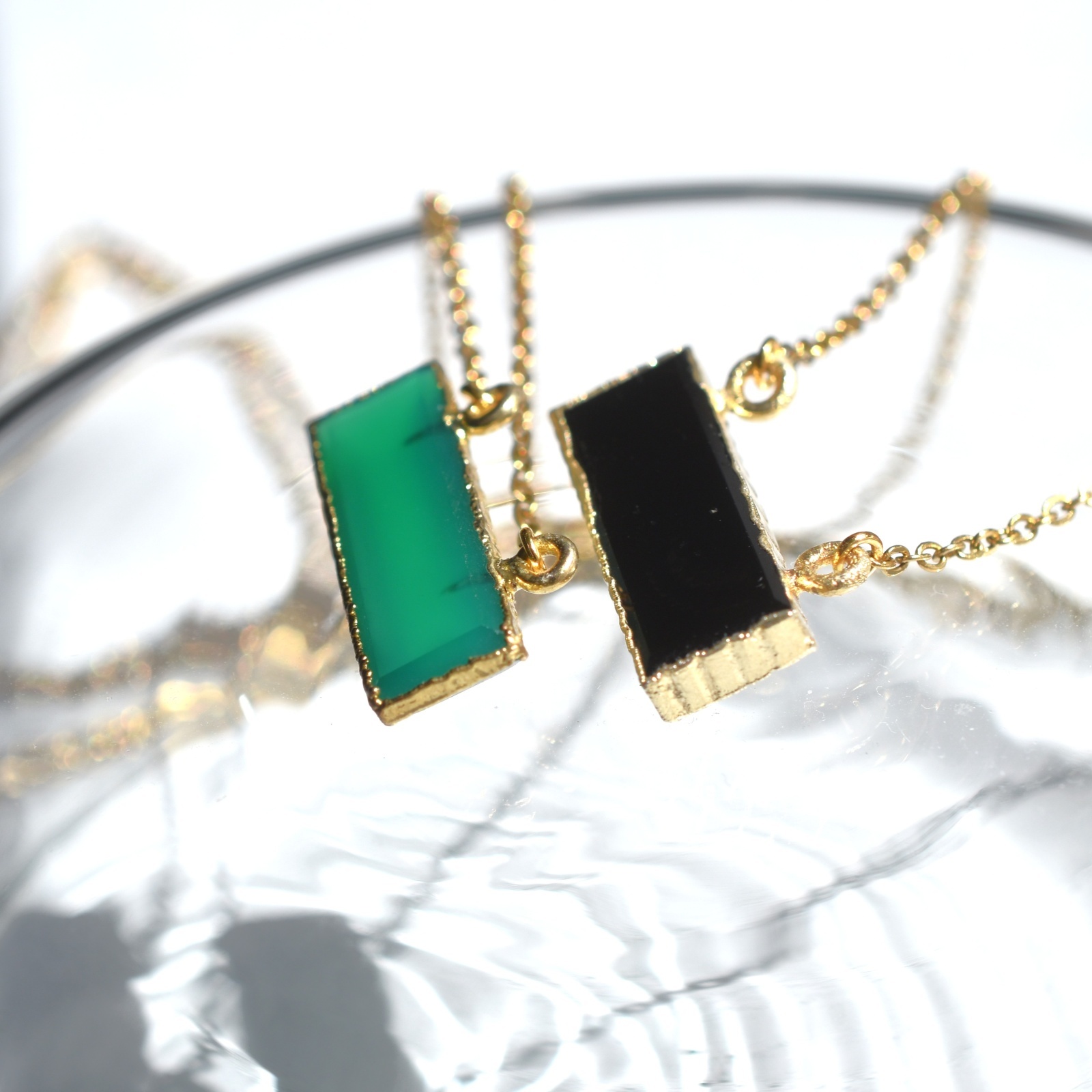 秋の新作【選べる・数量限定】個性派 レクタングル オニキス ブラック/グリーン サージカルステンレスネックレス