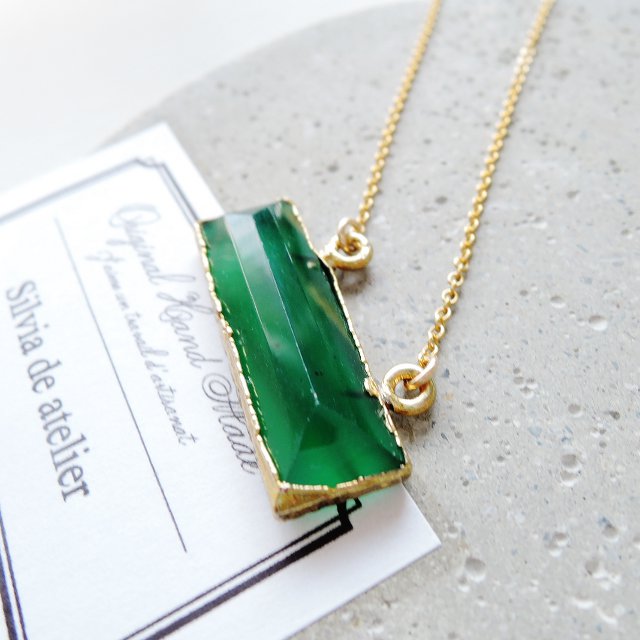 秋の新作【選べる・数量限定】個性派 レクタングル オニキス ブラック/グリーン サージカルステンレスネックレス [N2889]