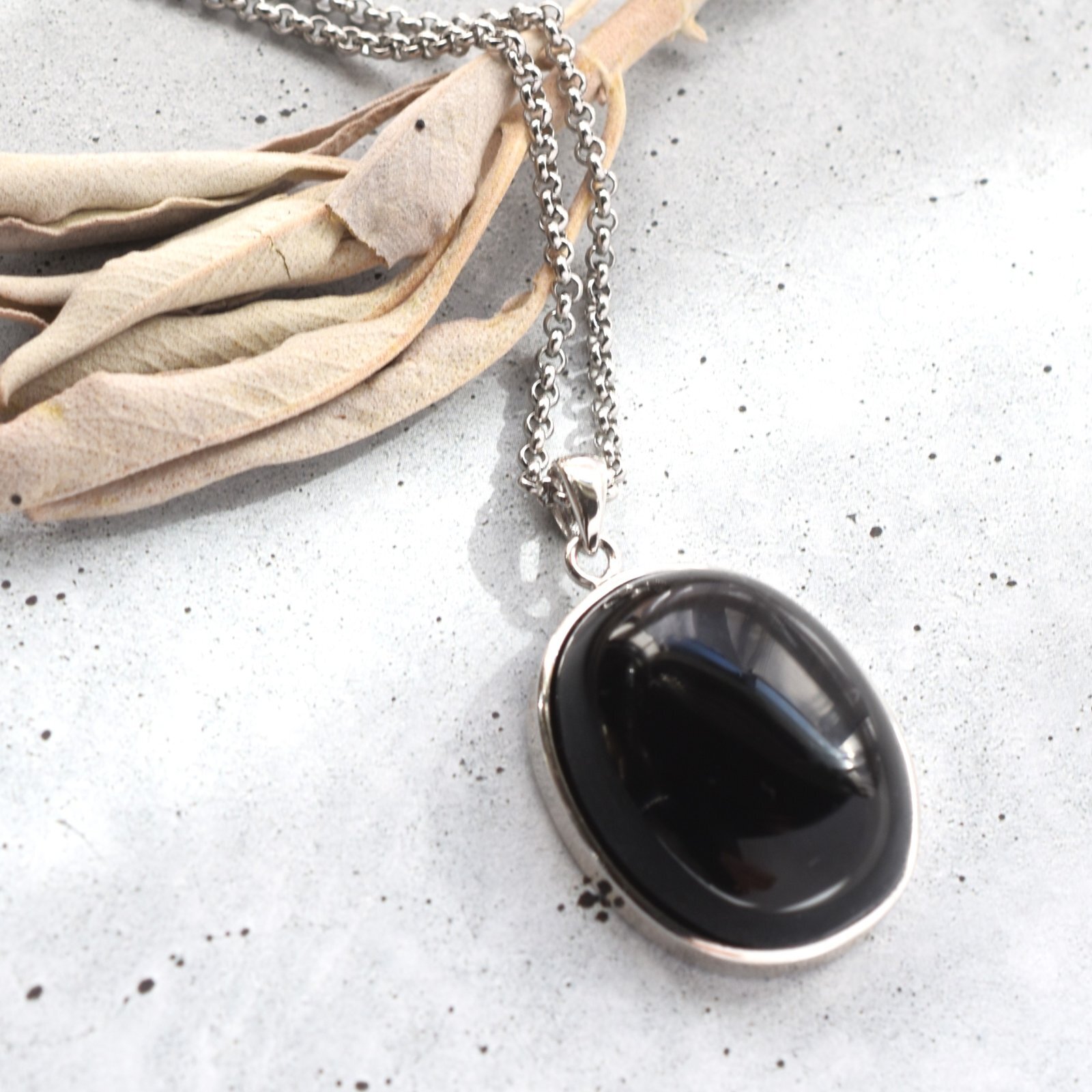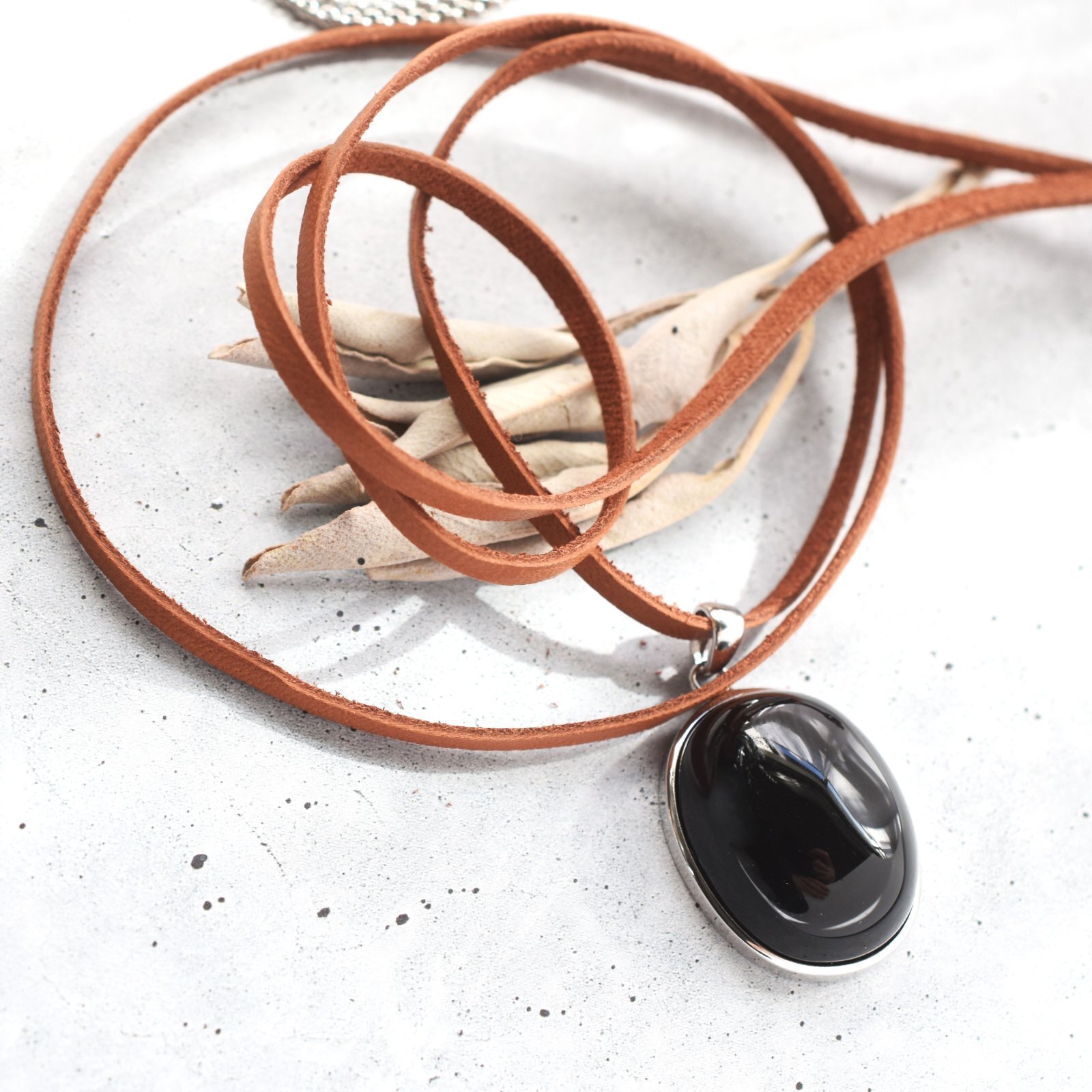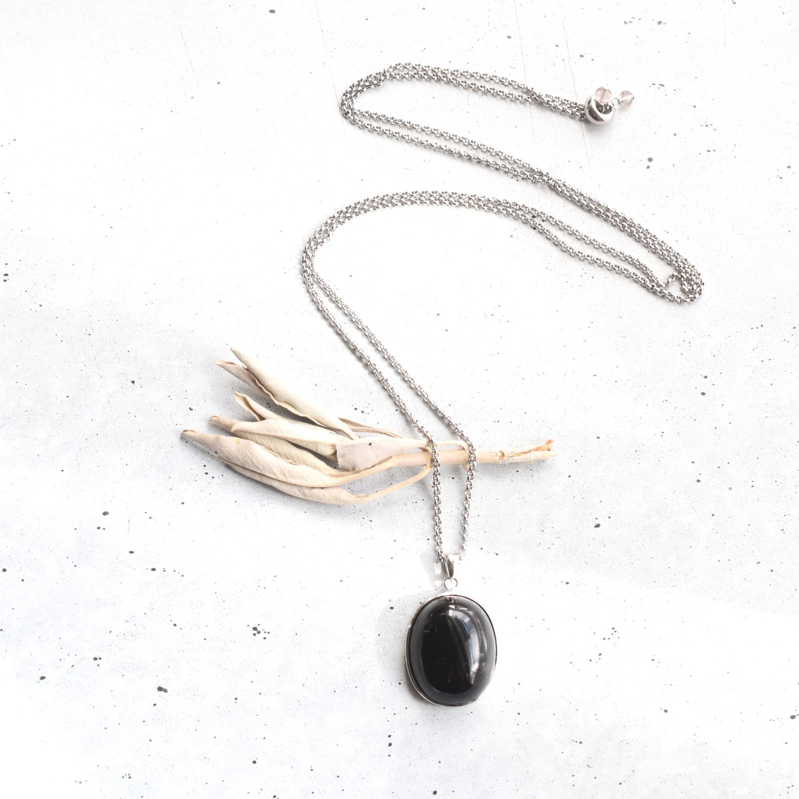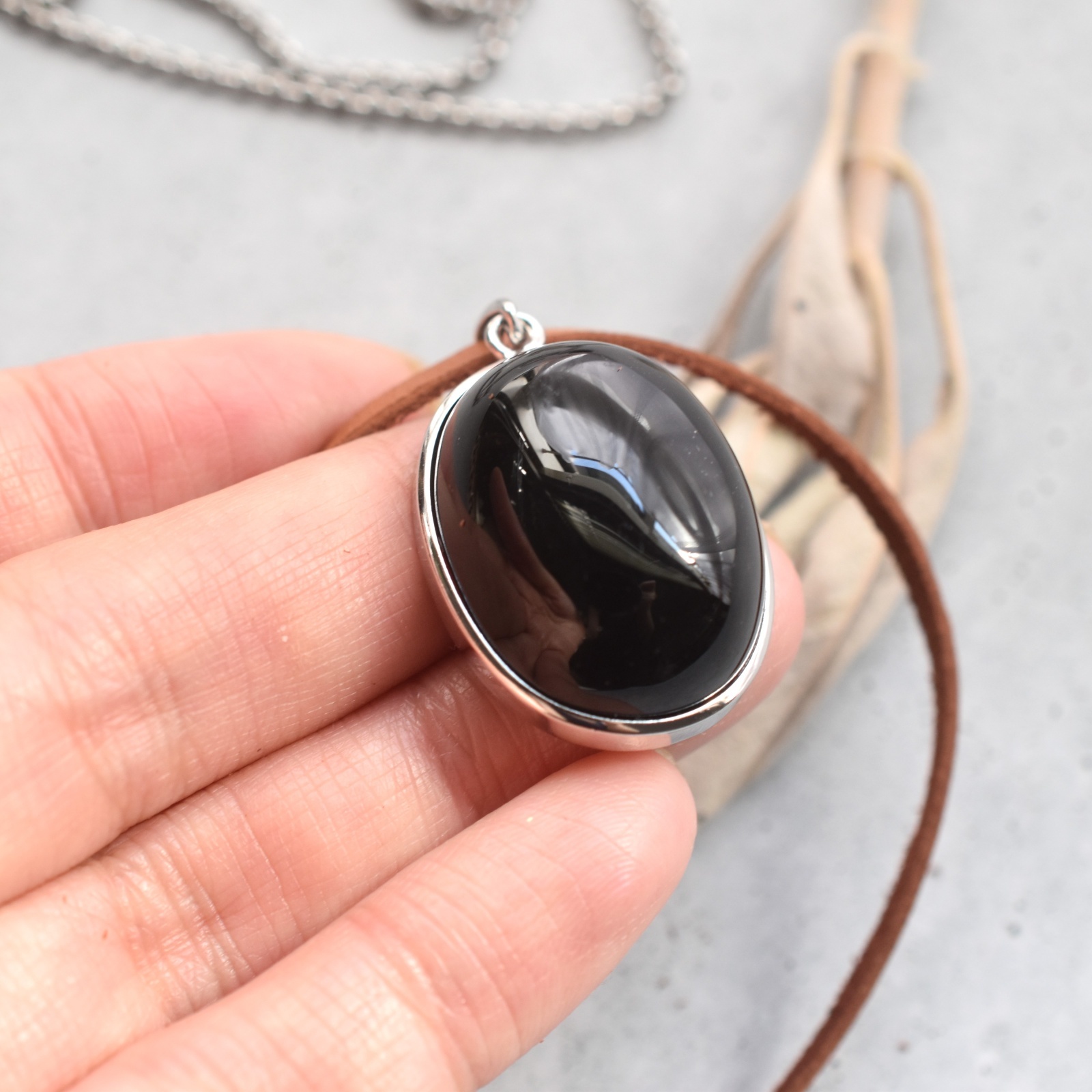 とても希少なチベット産モリオンの超大粒カボションネックレスです