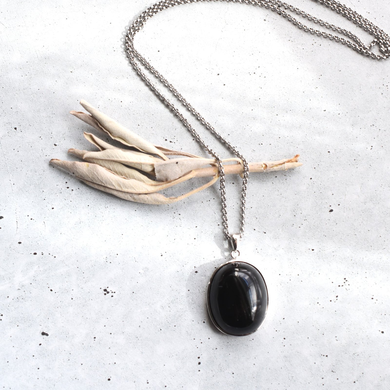 秋の新作【数量限定・14本のみ】超大粒 チベット産モリオン(黒水晶) サージカルステンレス ロングネックレス
