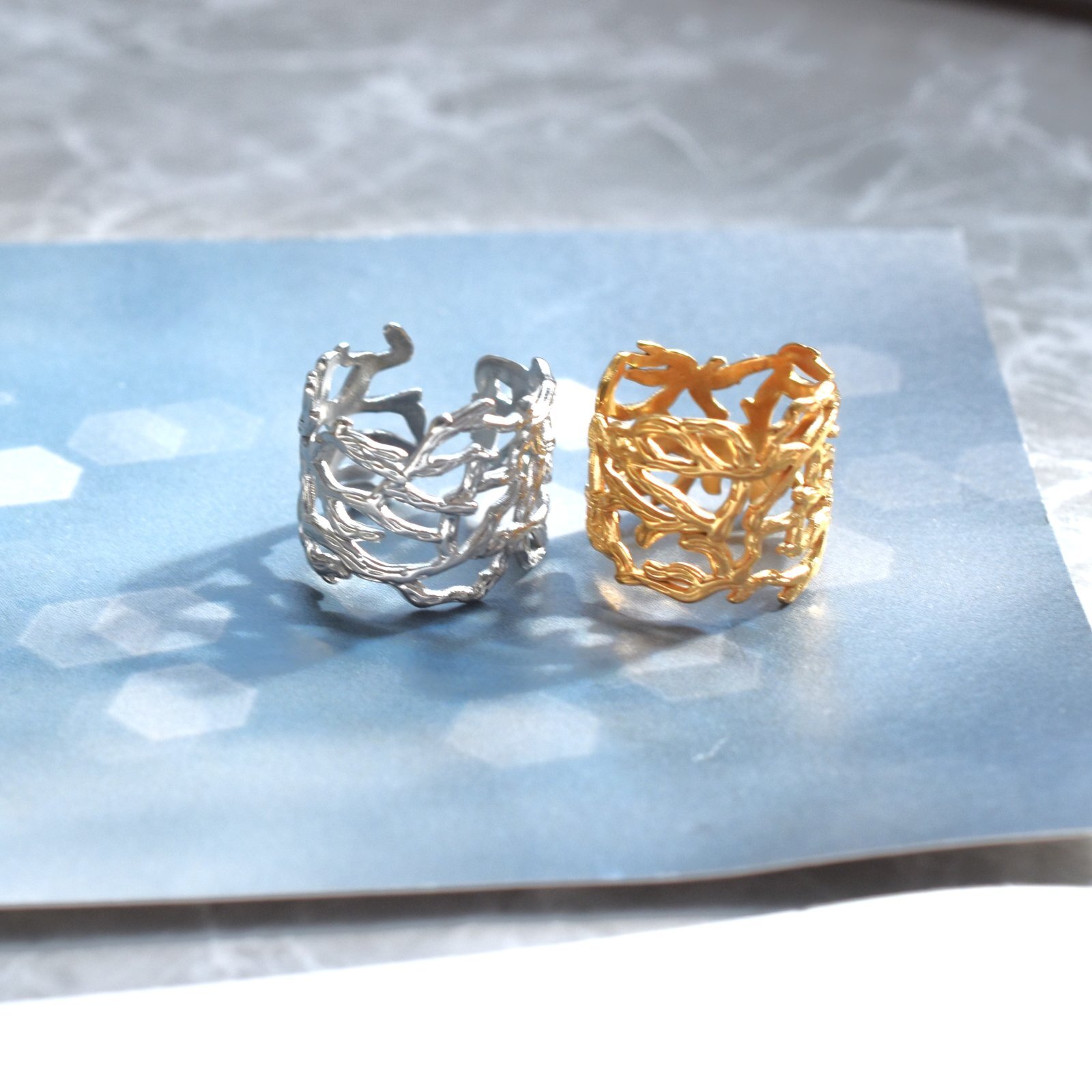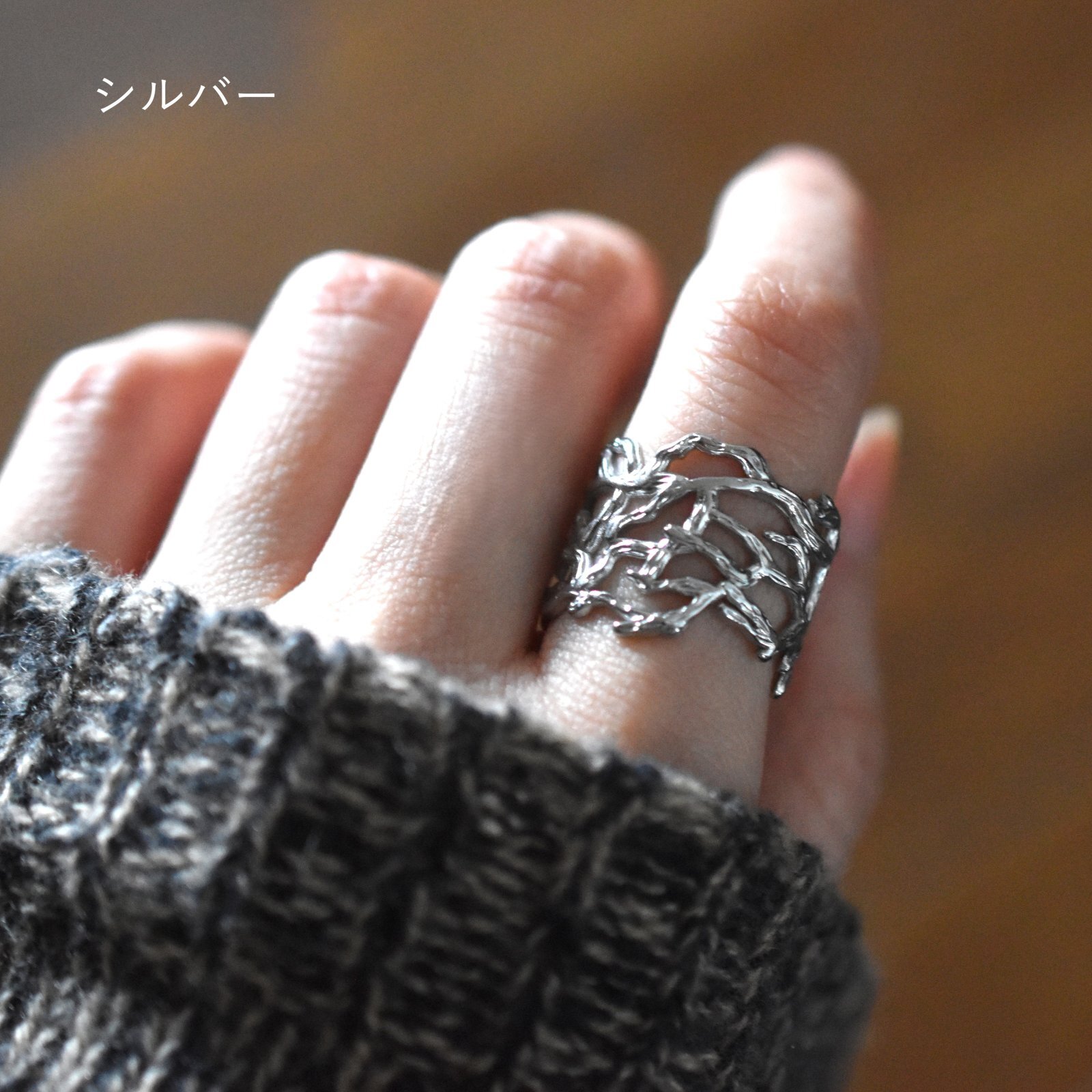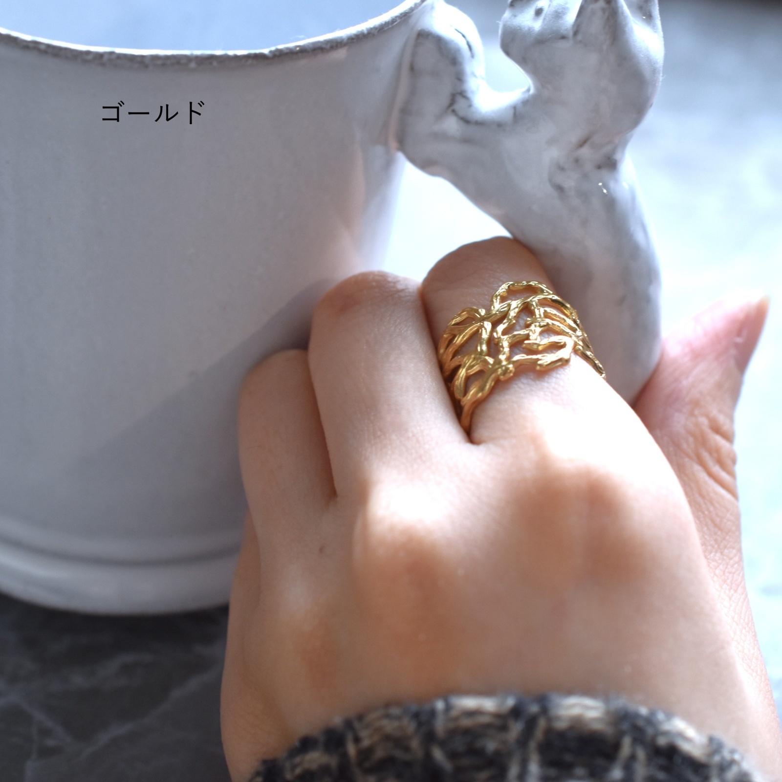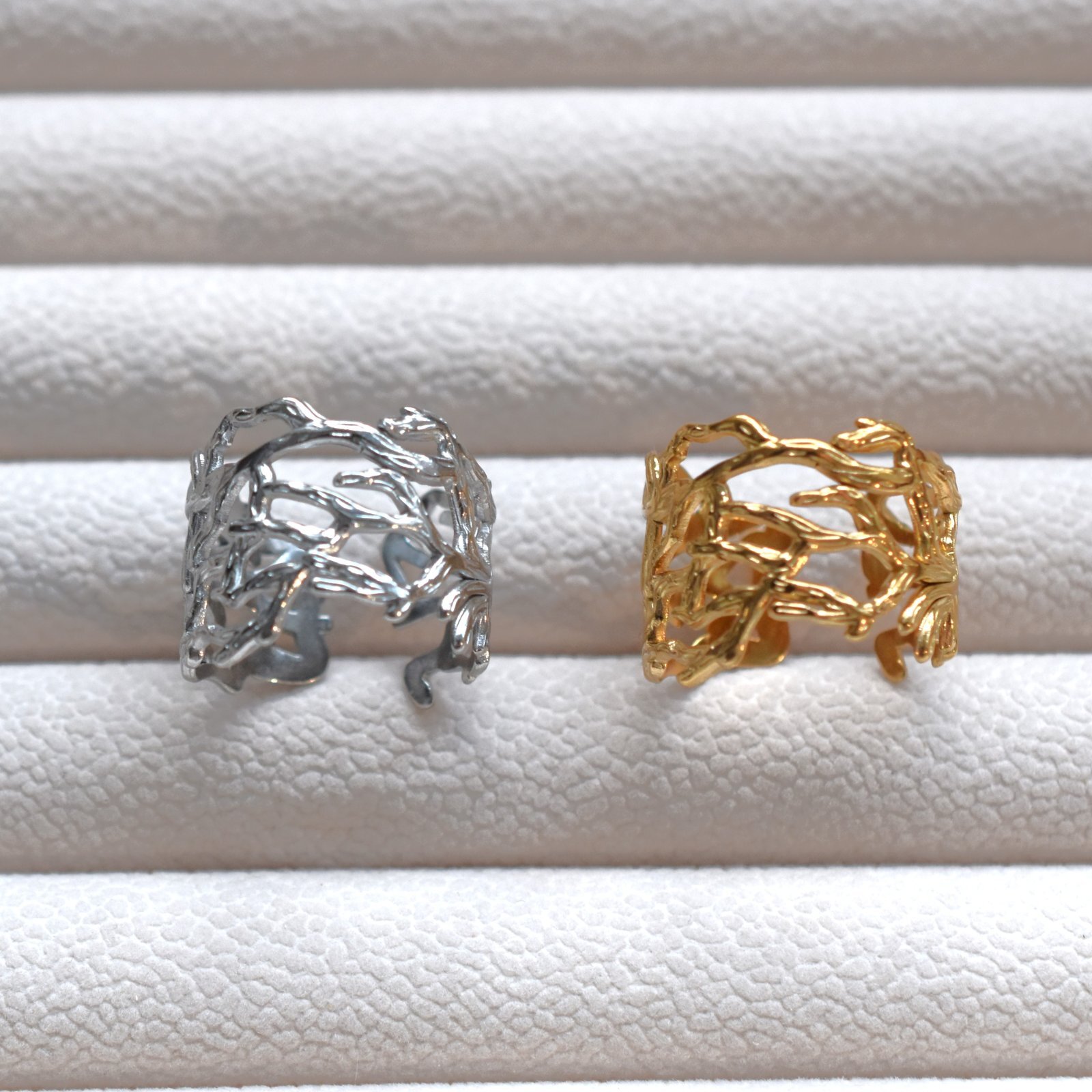 秋の新作【金属アレルギー対応・フリーサイズ】クラウン小枝 サージカルカルステンレスリング(指輪・イヤーカフ)
