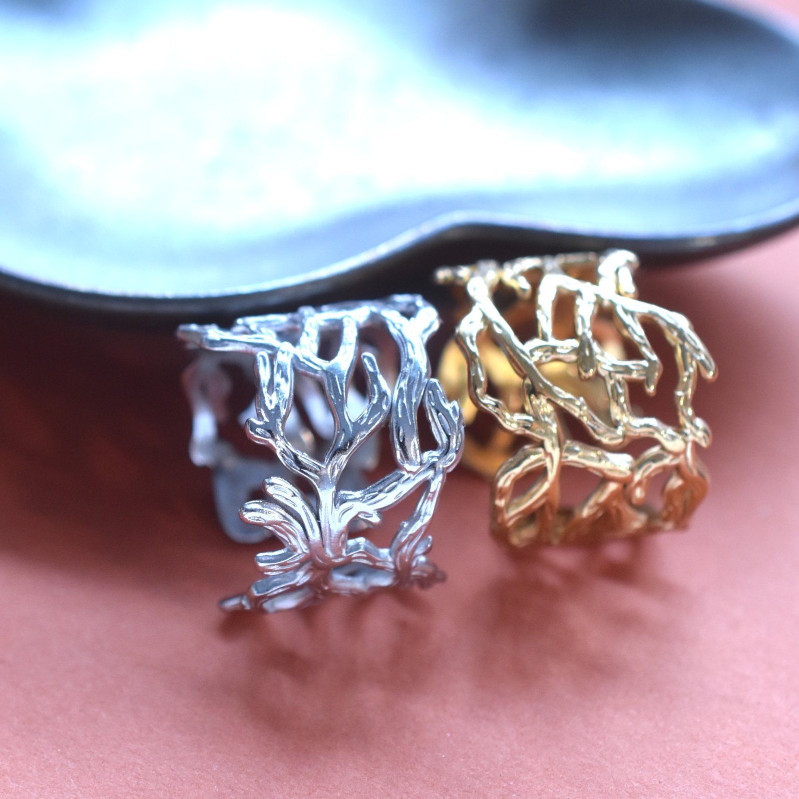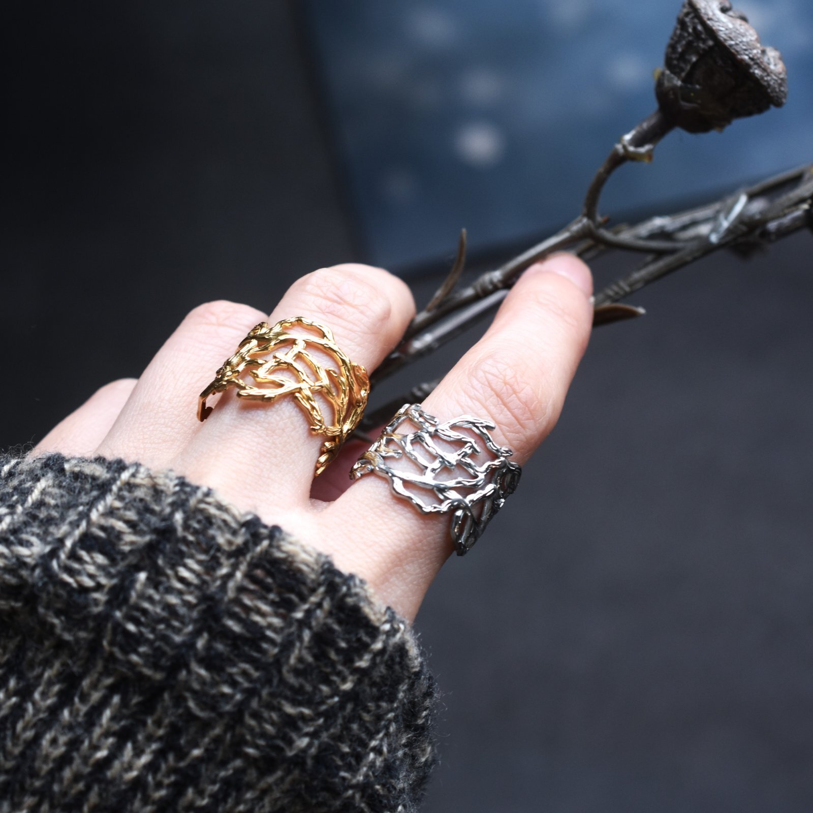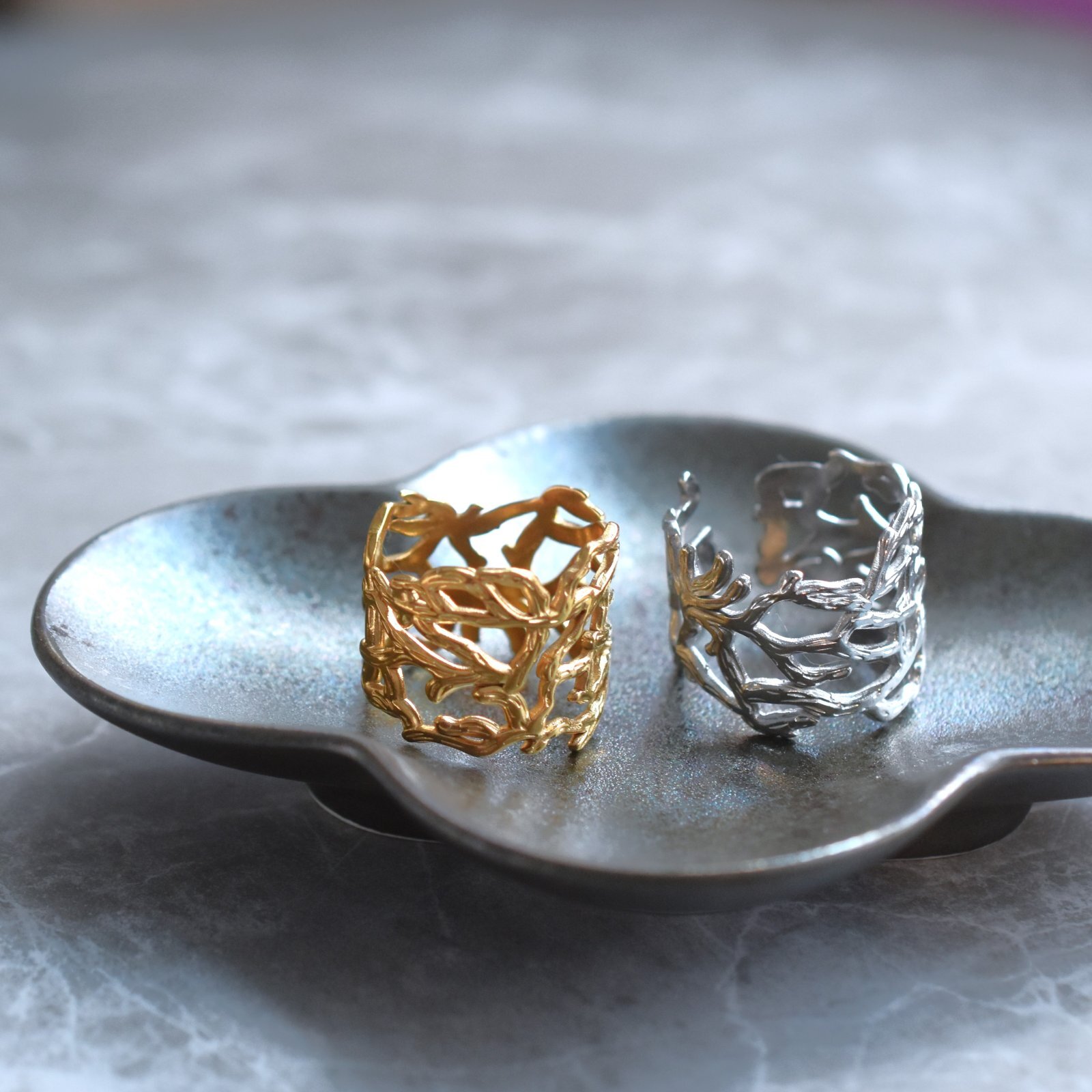 秋の新作【金属アレルギー対応・フリーサイズ】クラウン小枝 サージカルカルステンレスリング(指輪・イヤーカフ)