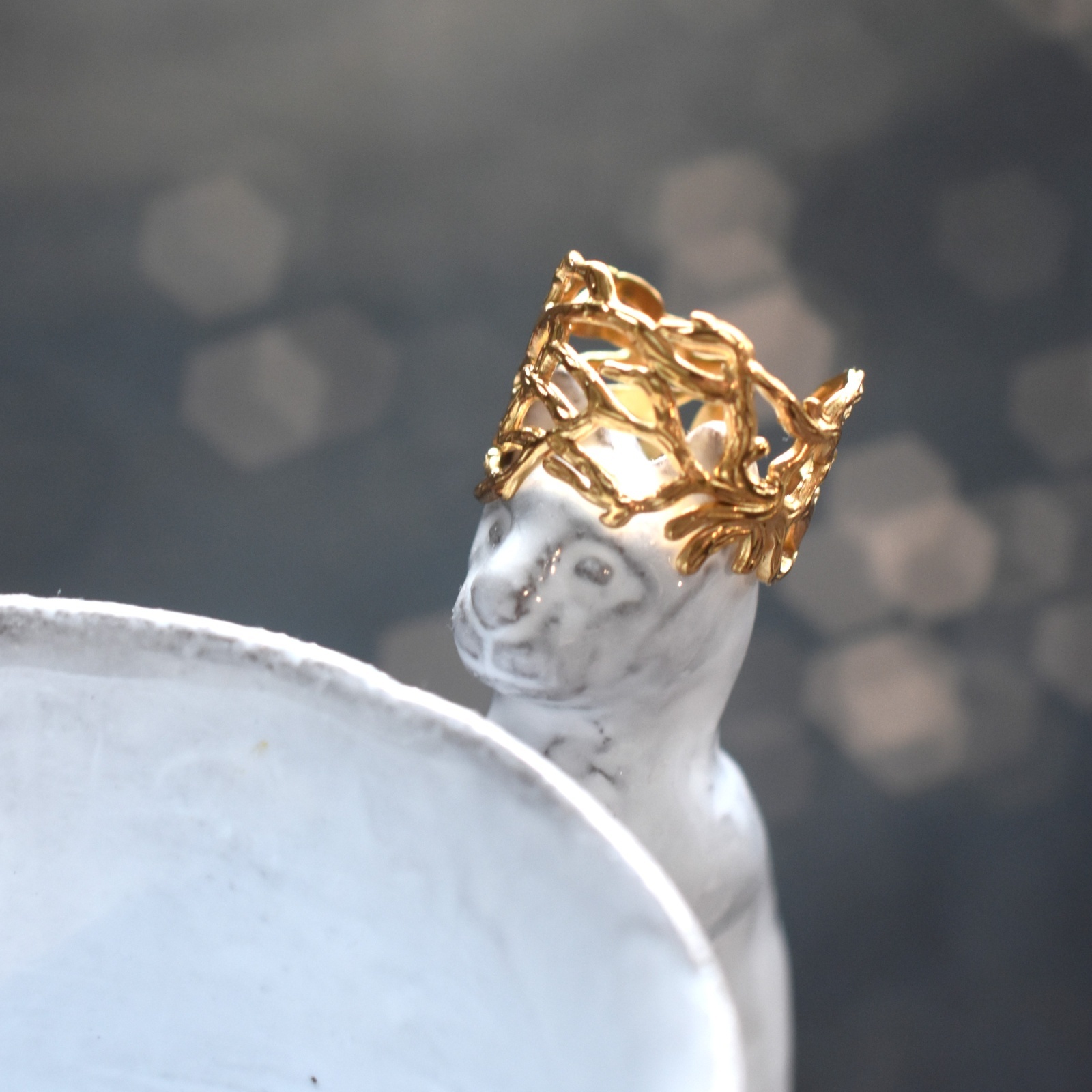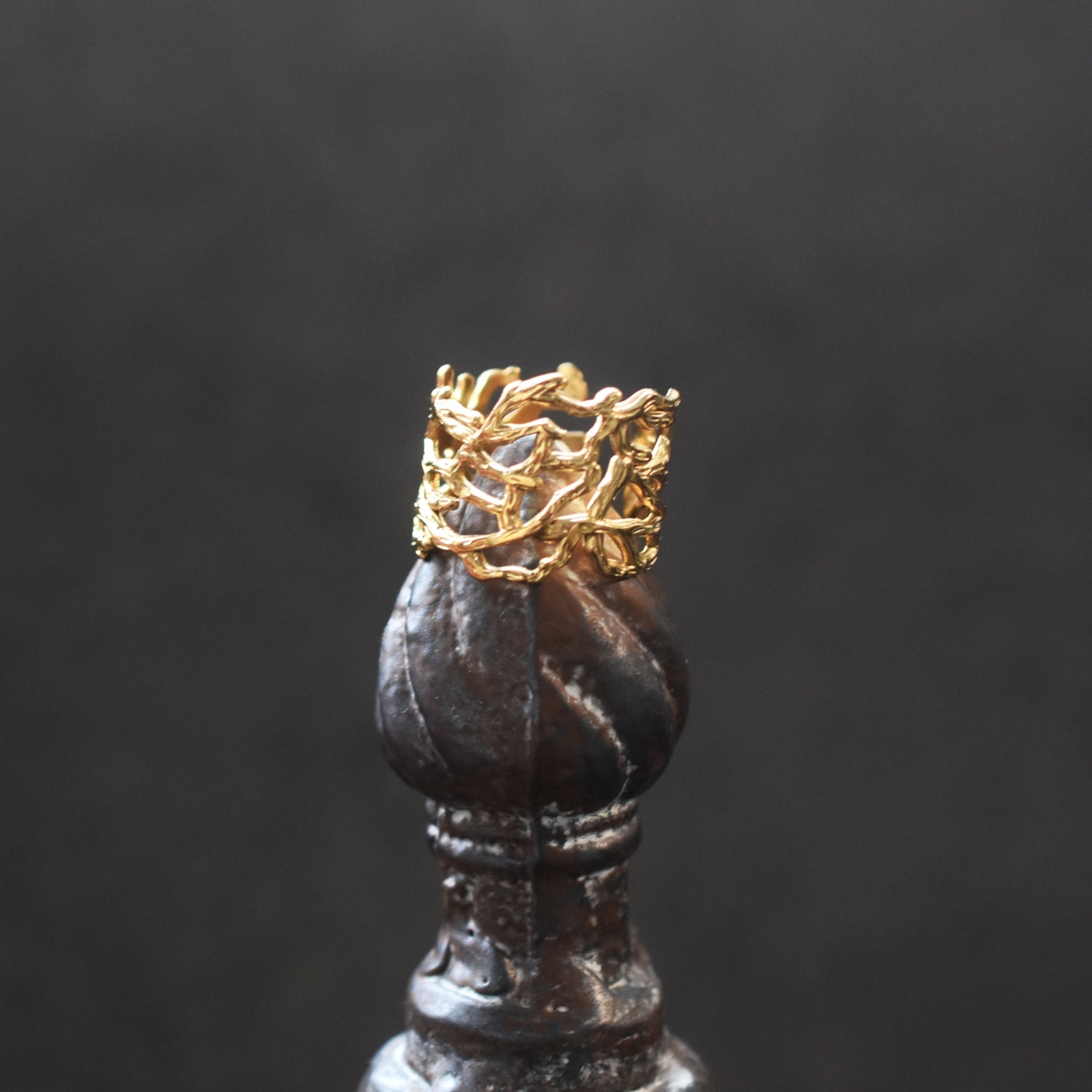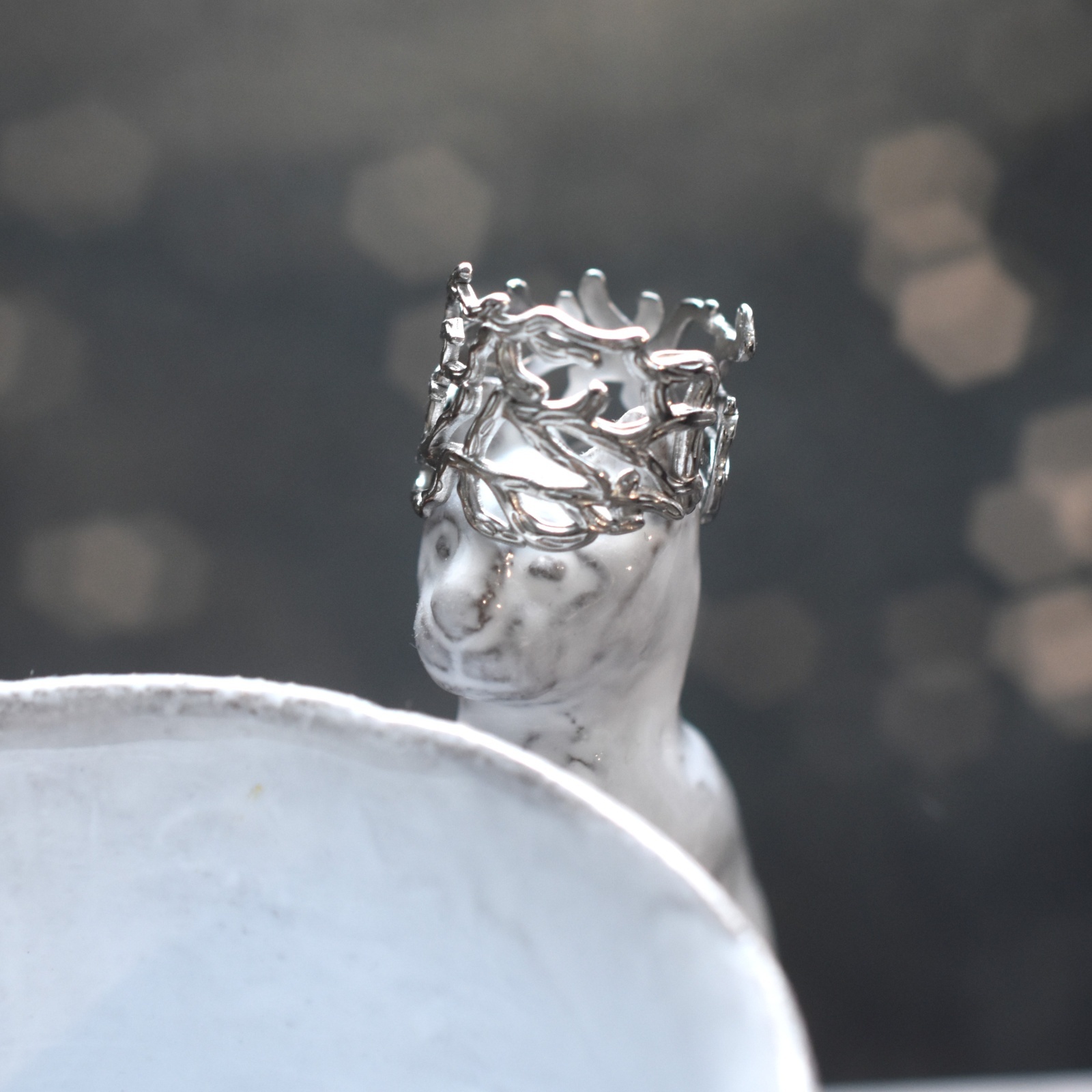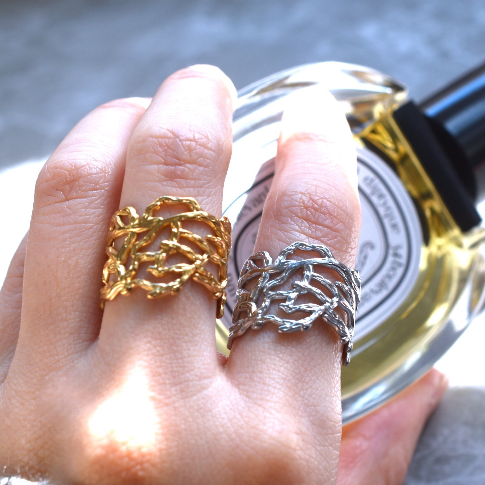 秋の新作【金属アレルギー対応・フリーサイズ】クラウン小枝 サージカルカルステンレスリング(指輪・イヤーカフ)