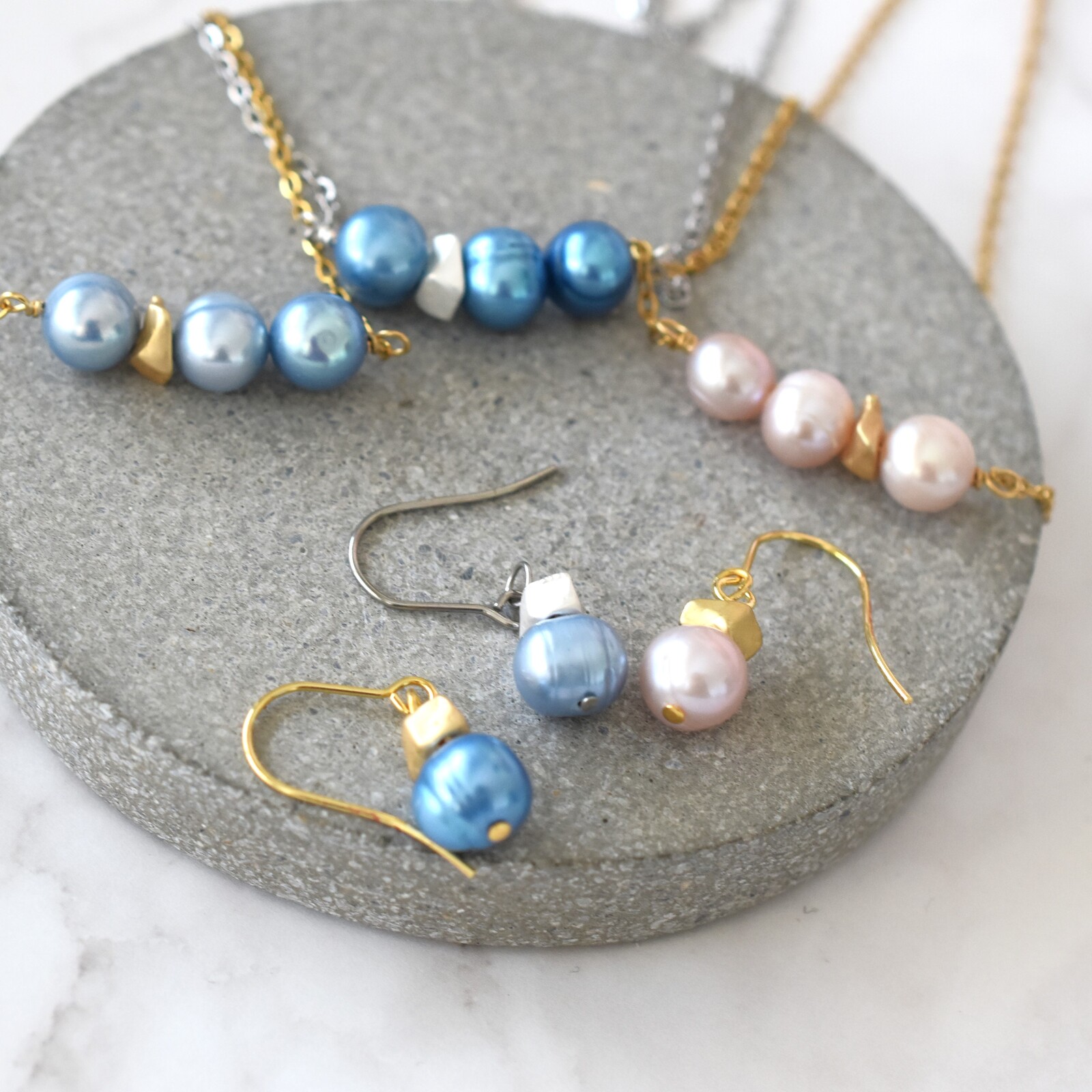 【選べる】3粒 淡水パール ライン サージカルステンレスネックレス40cm