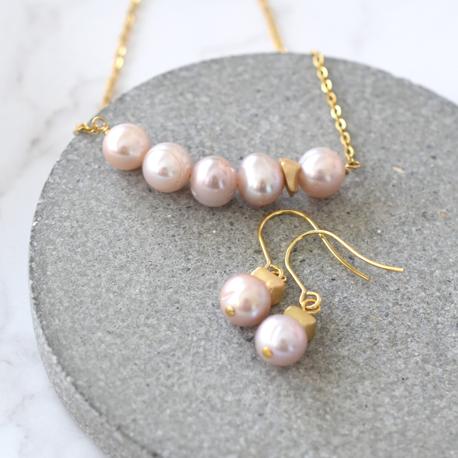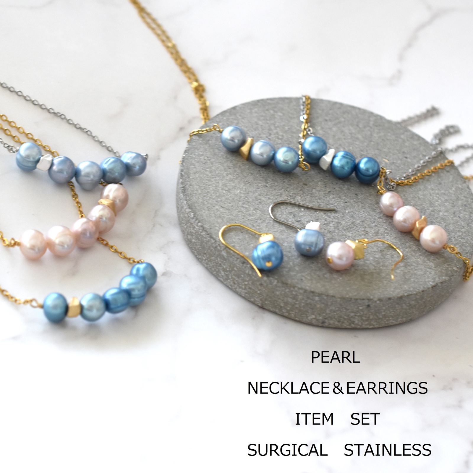 3粒パールと5粒パールネックレスのお揃いのデザインで