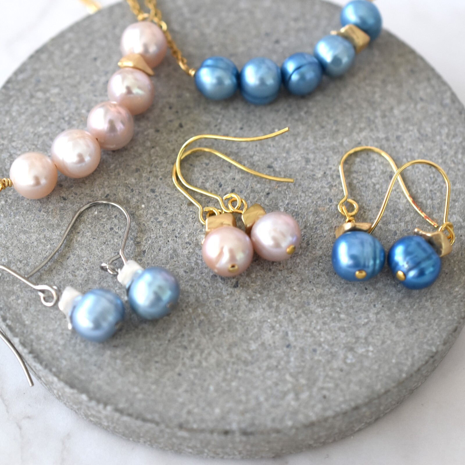 【選べる】一粒 カラー 淡水パール メタルビーズ サージカルステンレスピアス
