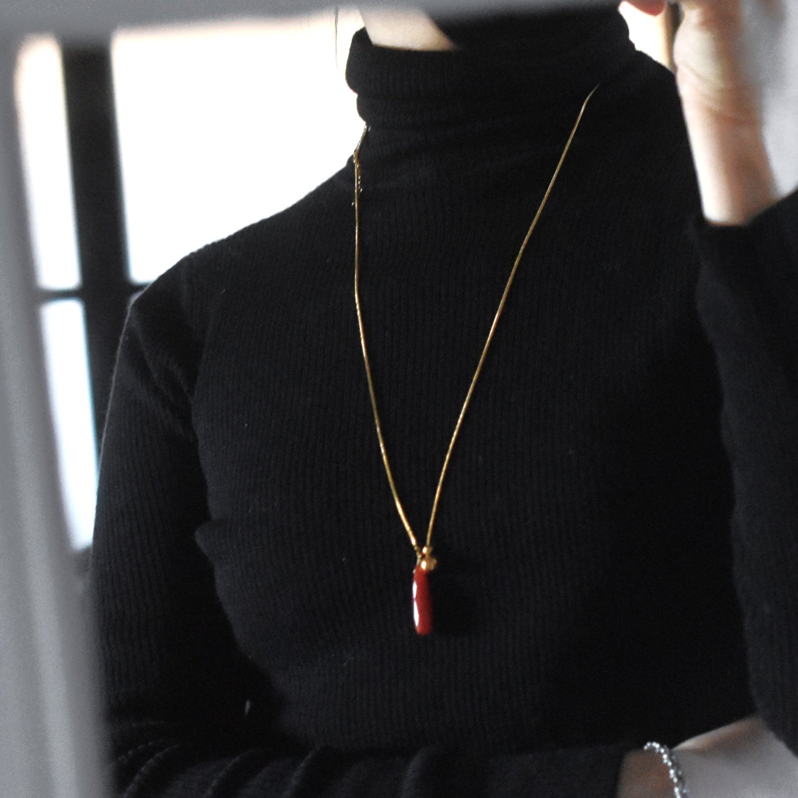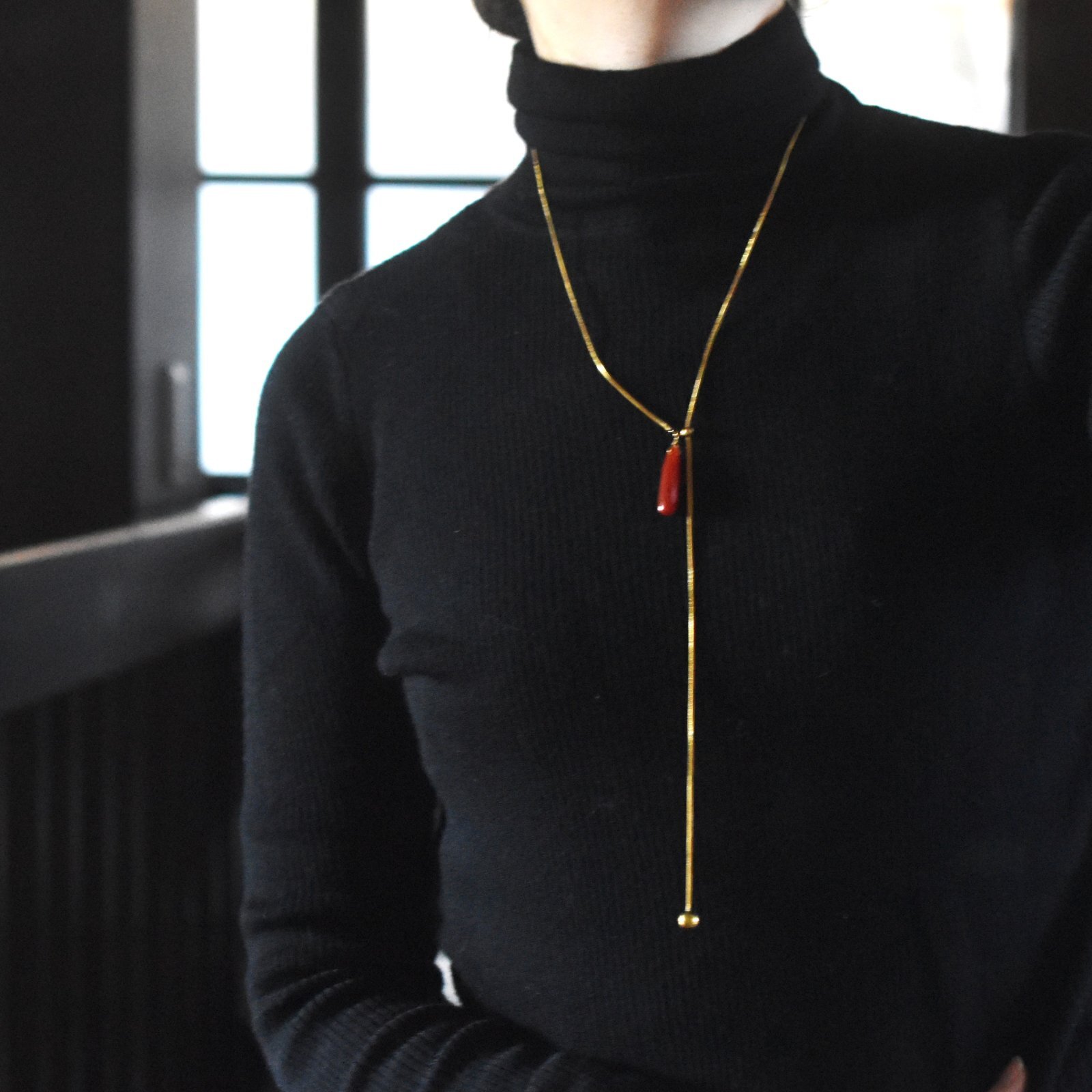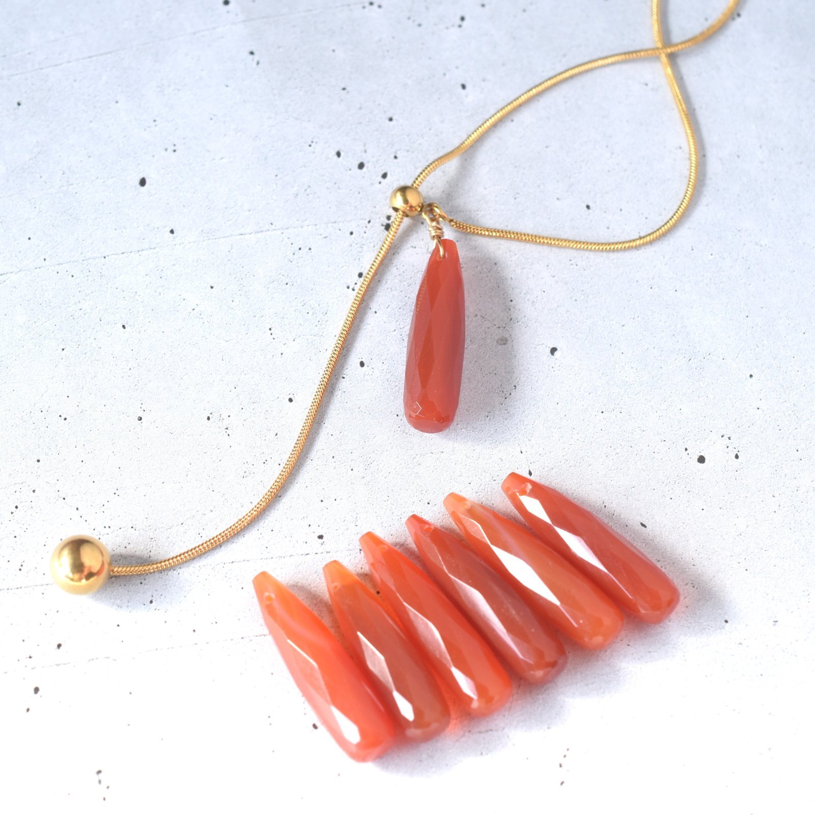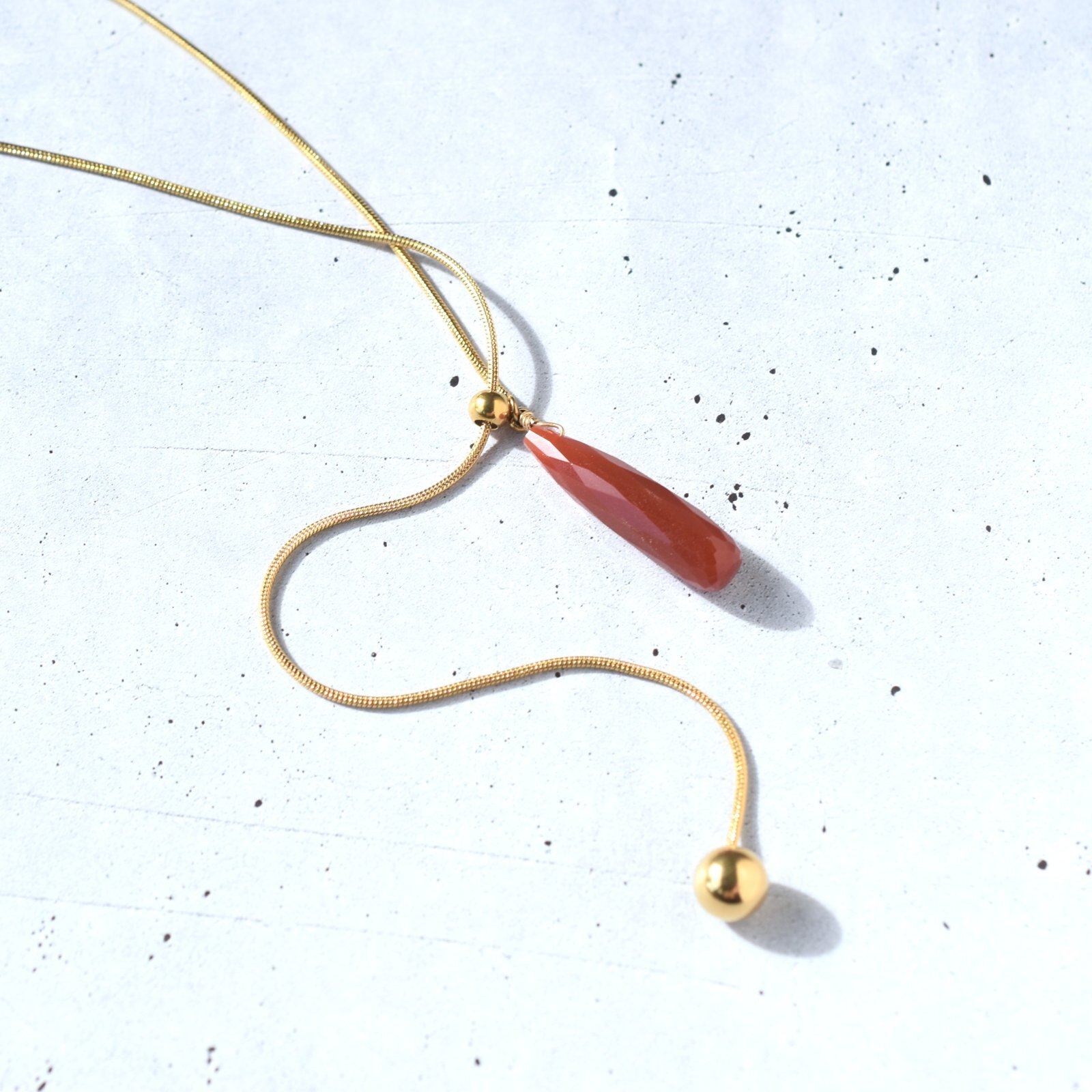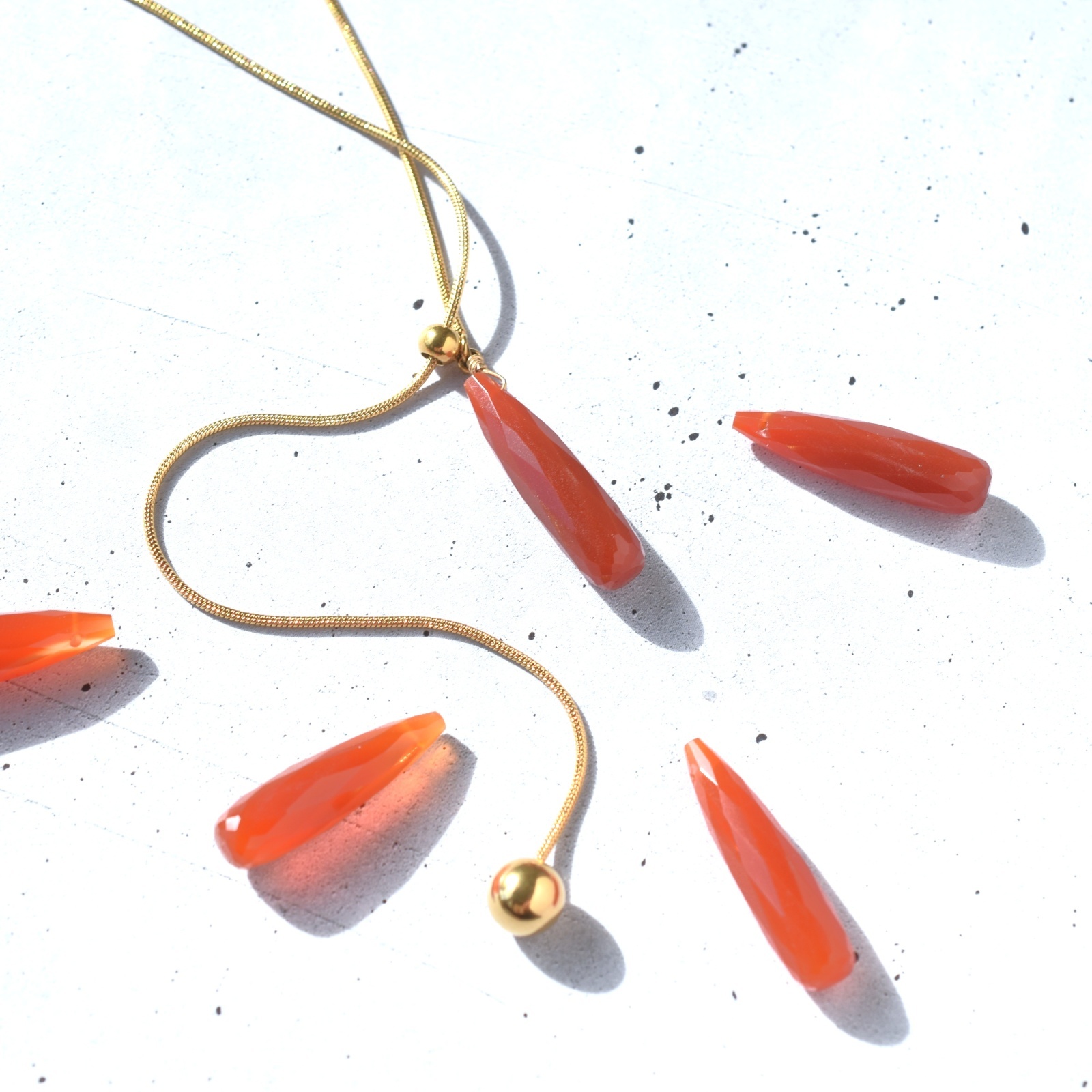 新作【数量限定】ブラッドオレンジカーネリアン Y字 サージカルステンレス ロングネックレス(シルバー・ゴールド)