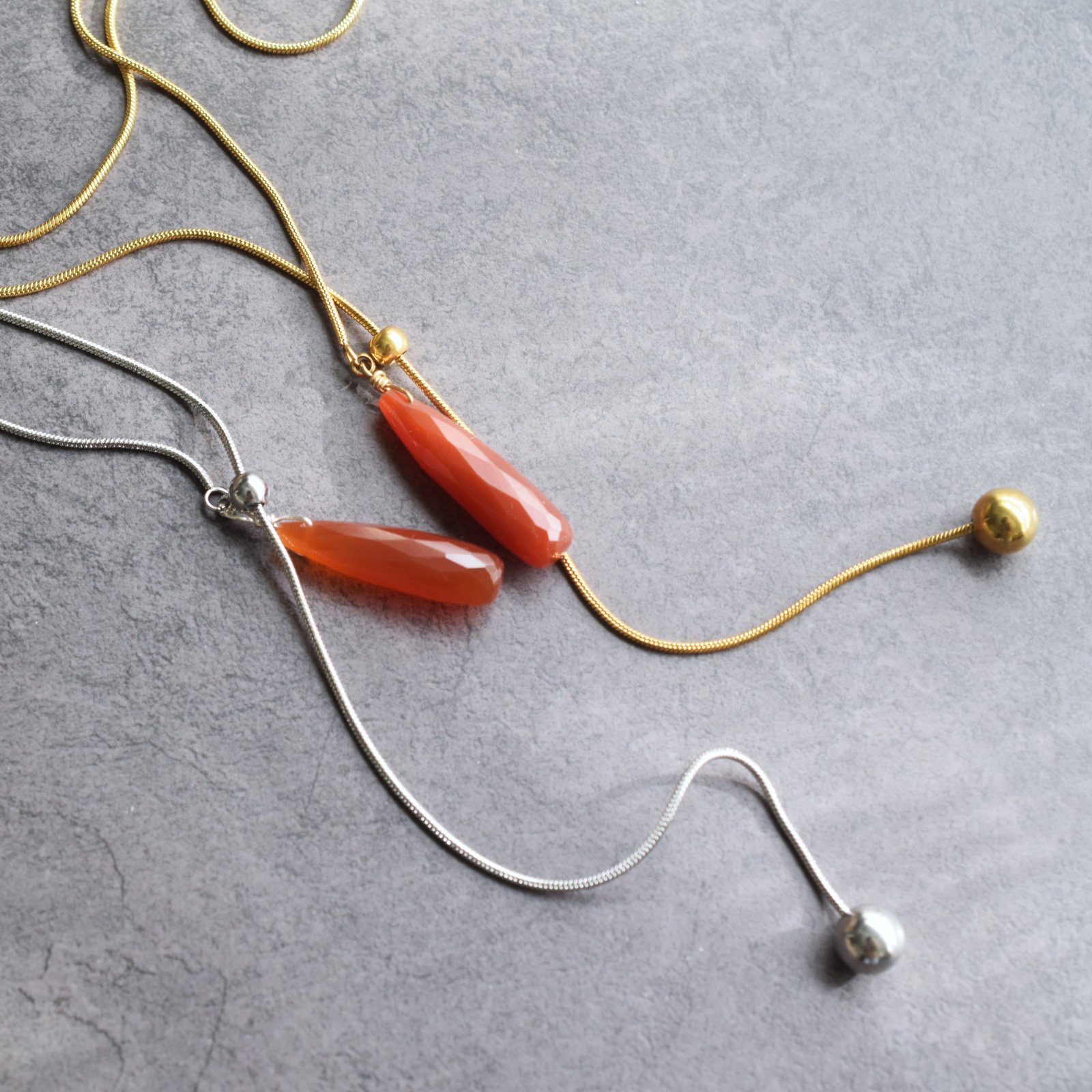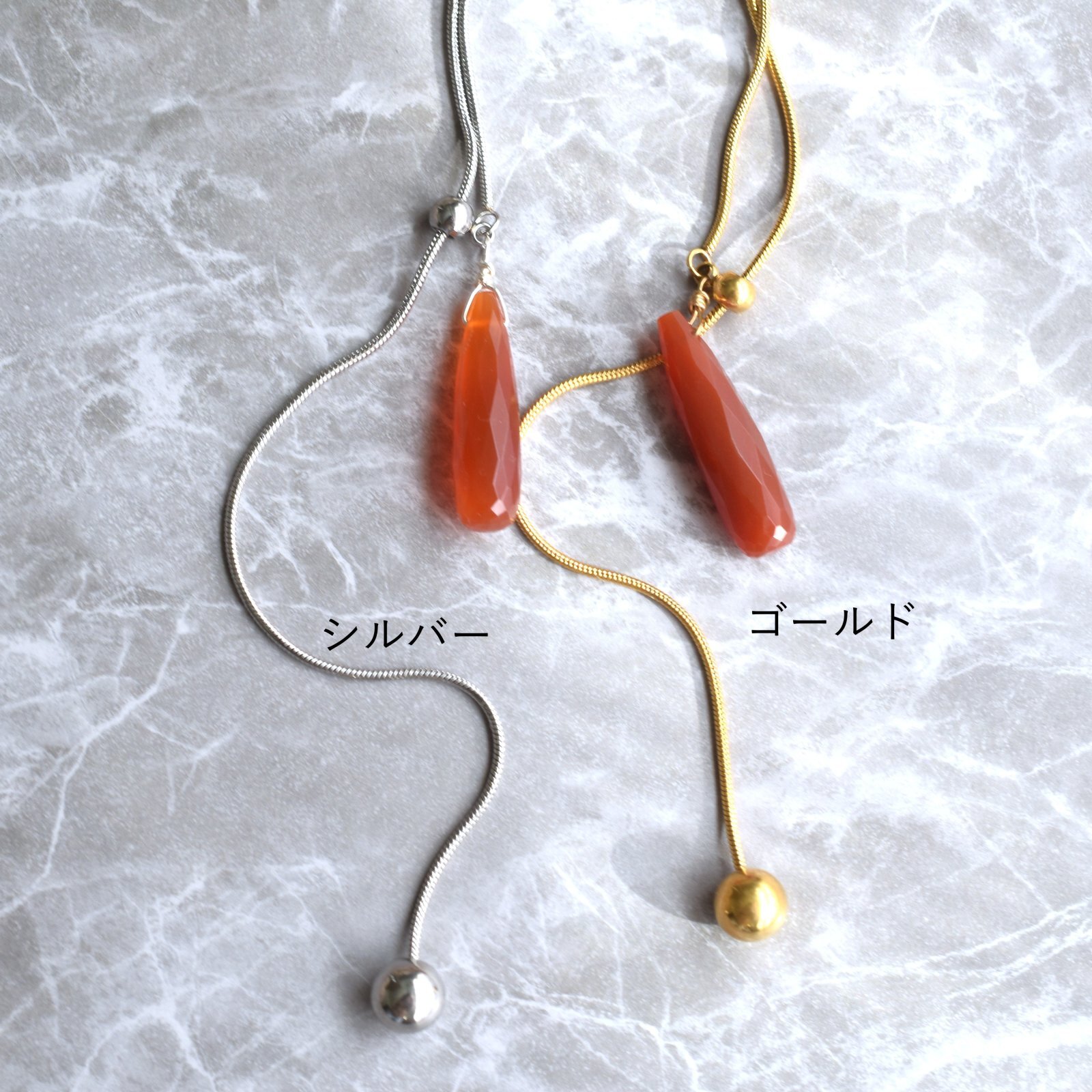 新作【数量限定】ブラッドオレンジカーネリアン Y字 サージカルステンレス ロングネックレス(シルバー・ゴールド) [N2927]