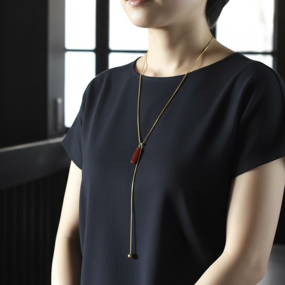 新作【残り14】ブラッドオレンジカーネリアン Y字 サージカルステンレス ロングネックレス(シルバー・ゴールド)