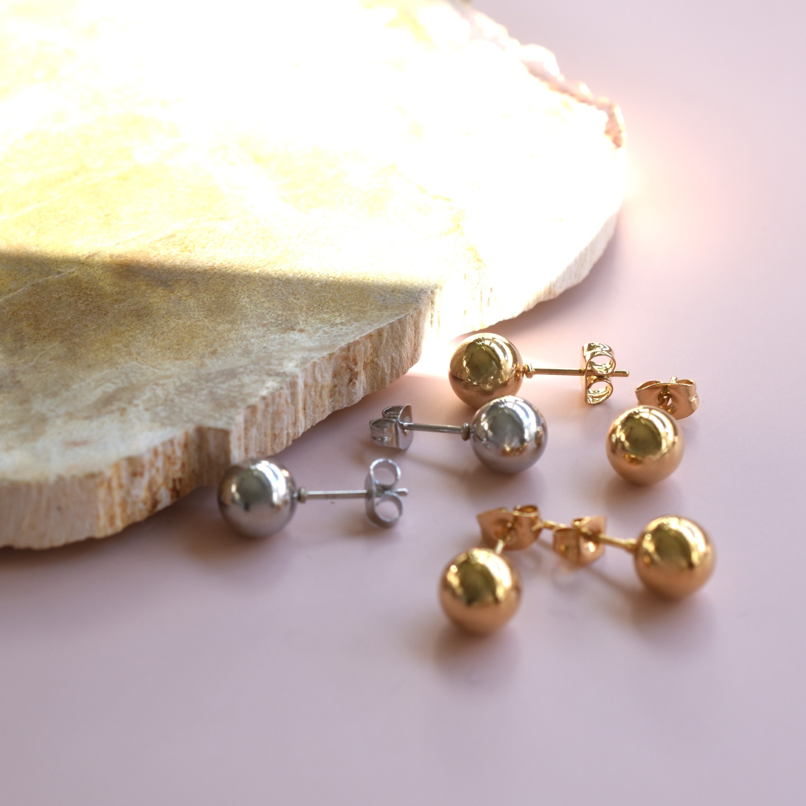 316Lサージカルステンレス製8mmボールスタッドピアス・キャッチ