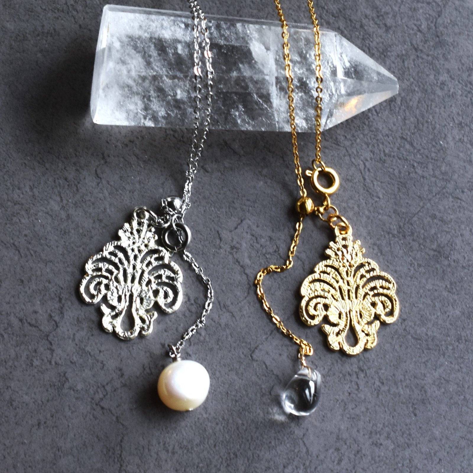 または淡水パールとクリスタルドロップのいずれかをお選びいただけます