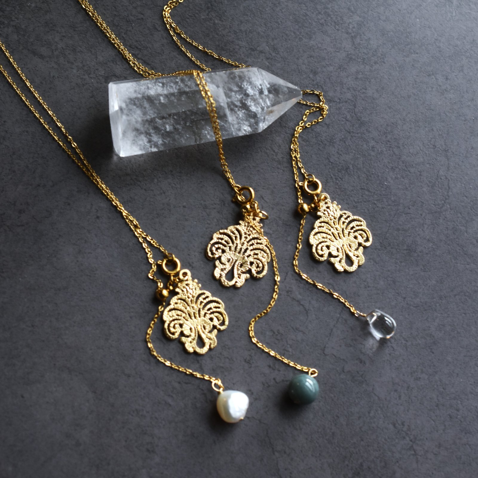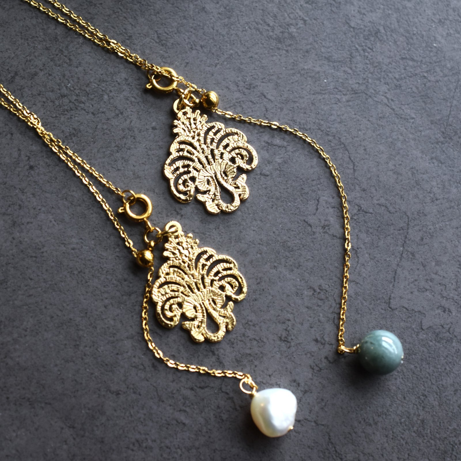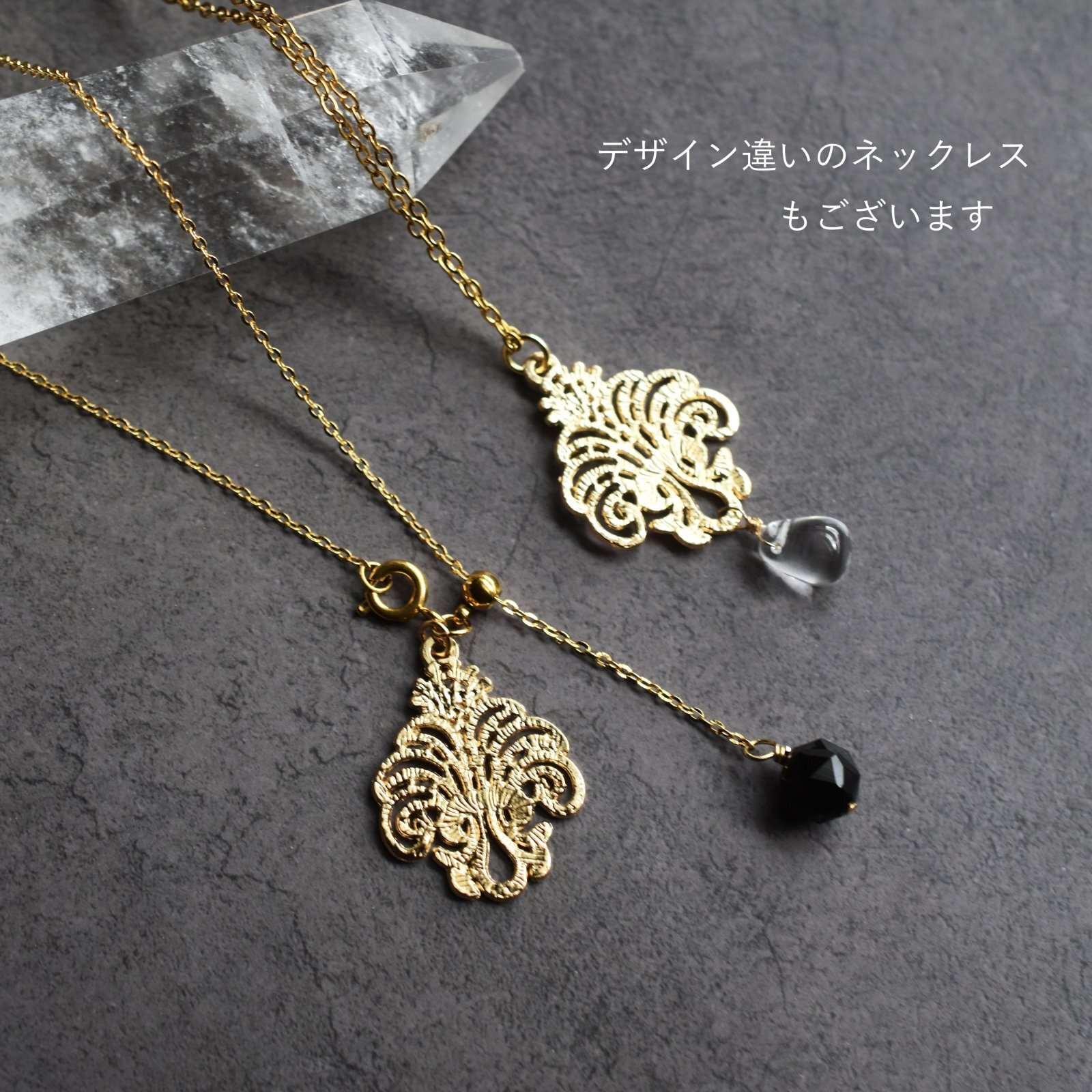 ゴールド追加!【選べる】シャンデリアレース スライド式 翡翠・モリオン 2WAY サージカルステンレスネックレス60cm