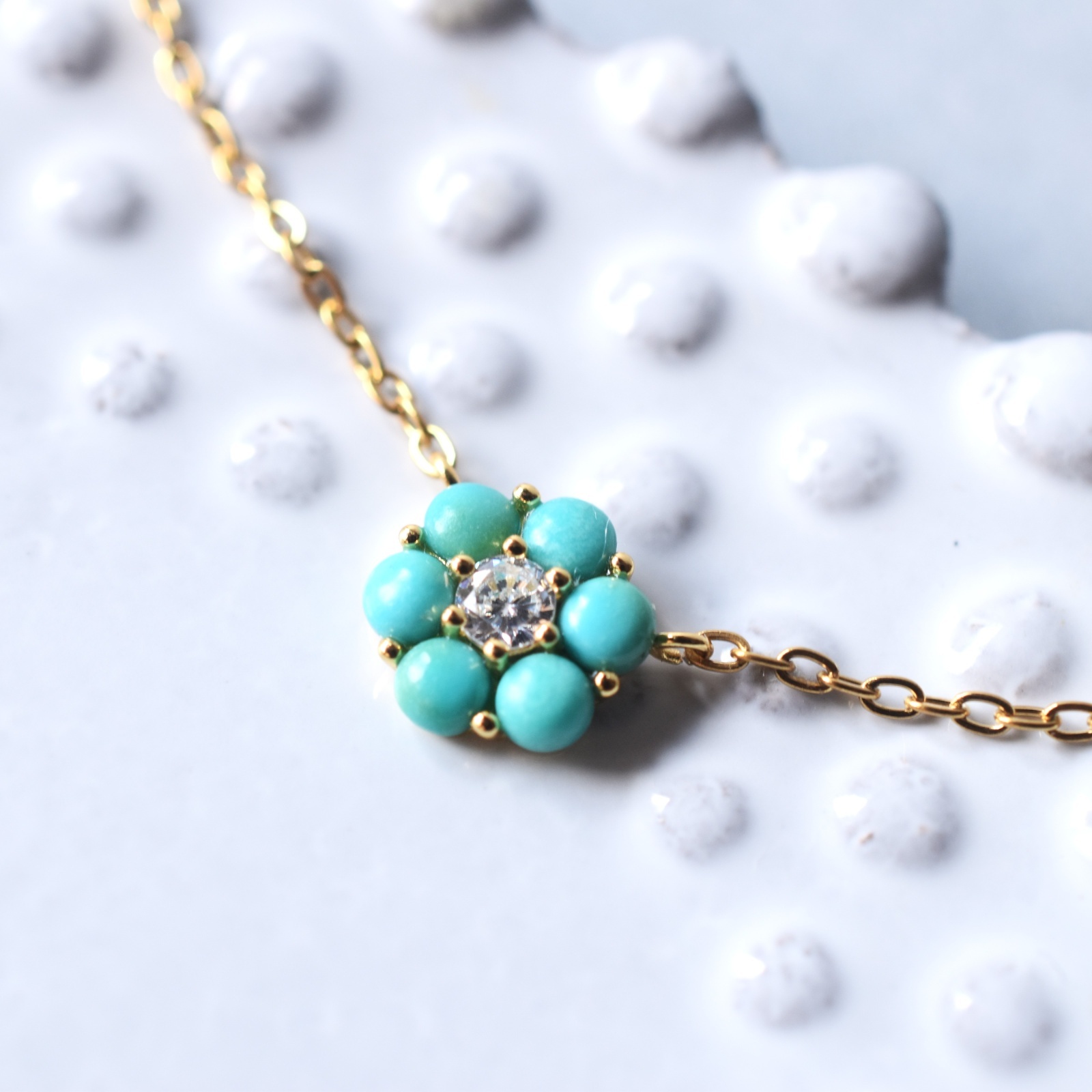 冬の新作【限定7点】12月誕生石 天然ターコイズ フラワー サージカルステンレスネックレス