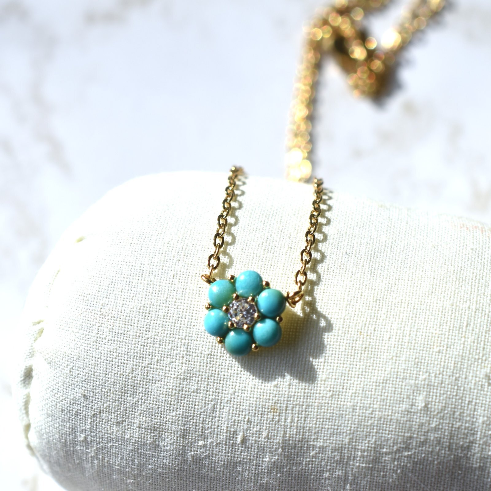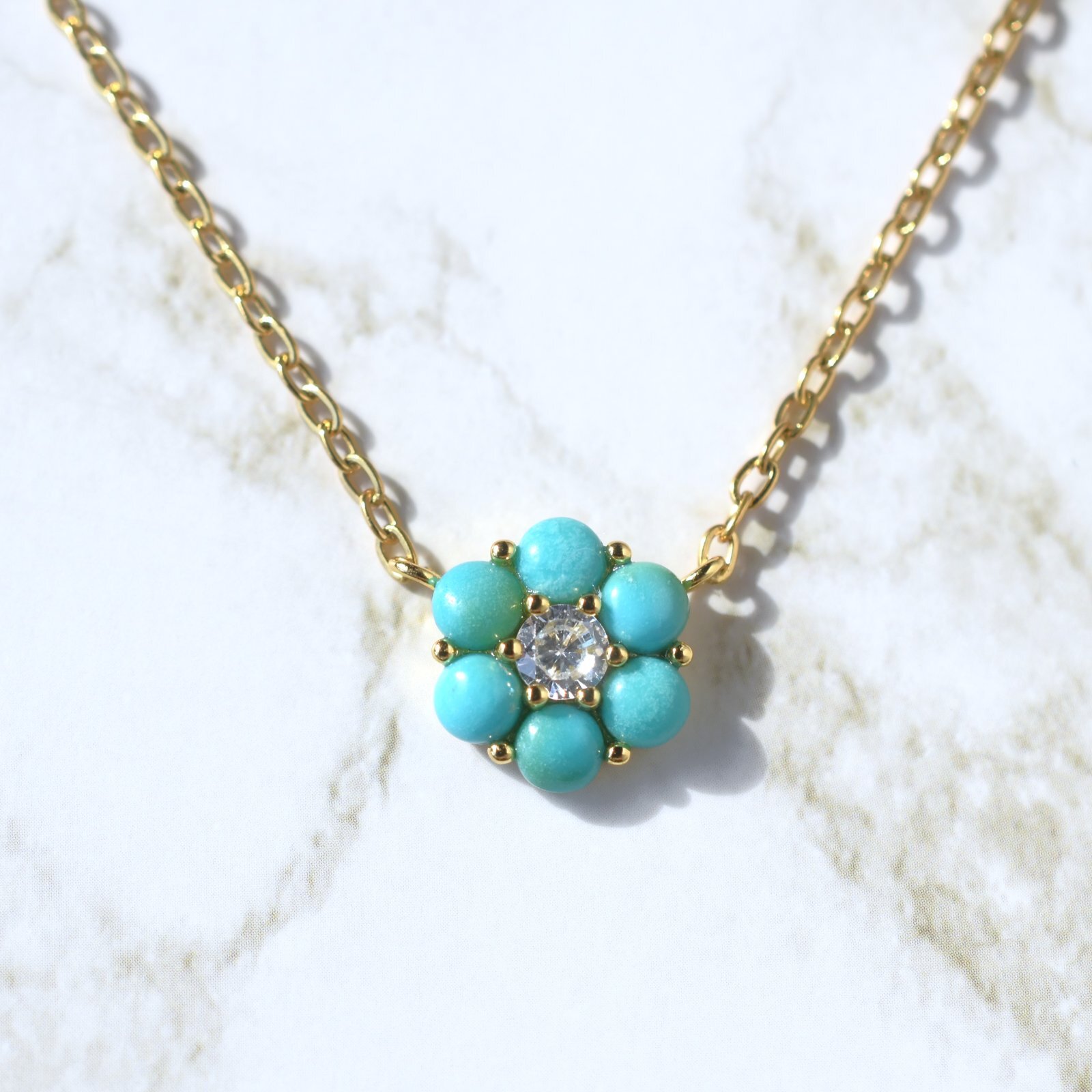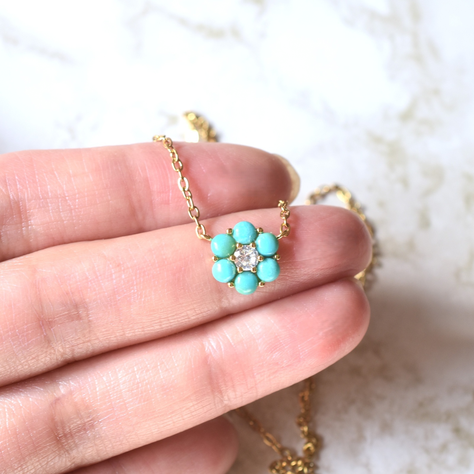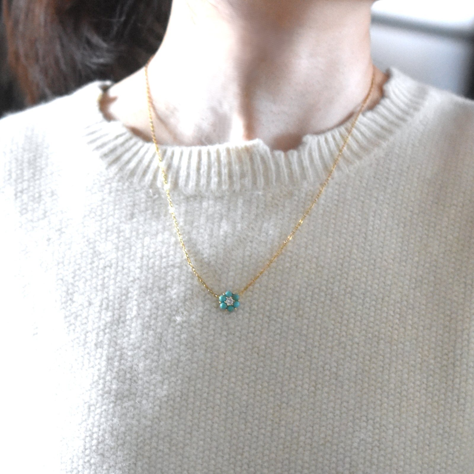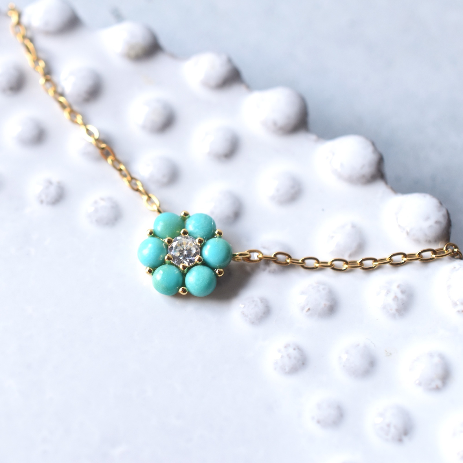 可愛らしいフラワーモチーフのターコイズネックレスです