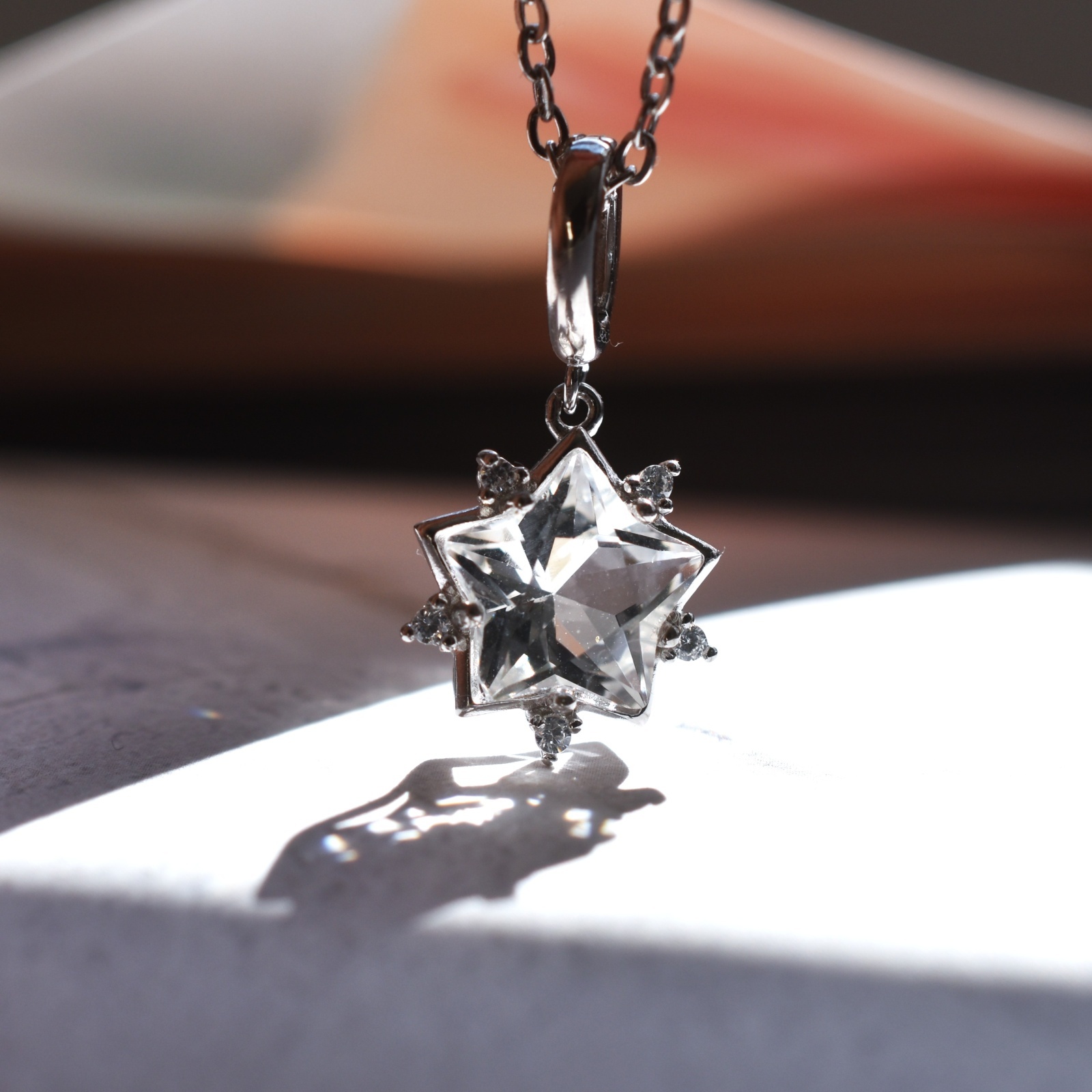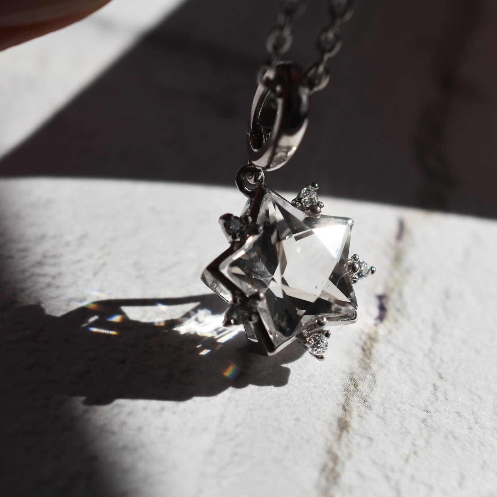 冬の新作【限定2】宝石質 クリスタル スター ジェムカット ペンダント シルバー サージカルステンレスネックレス