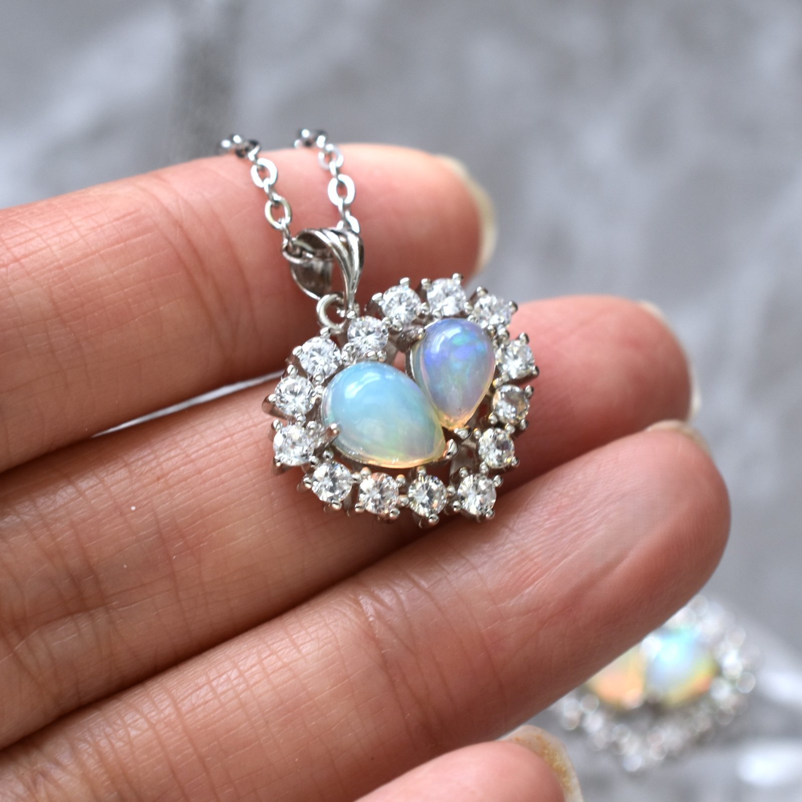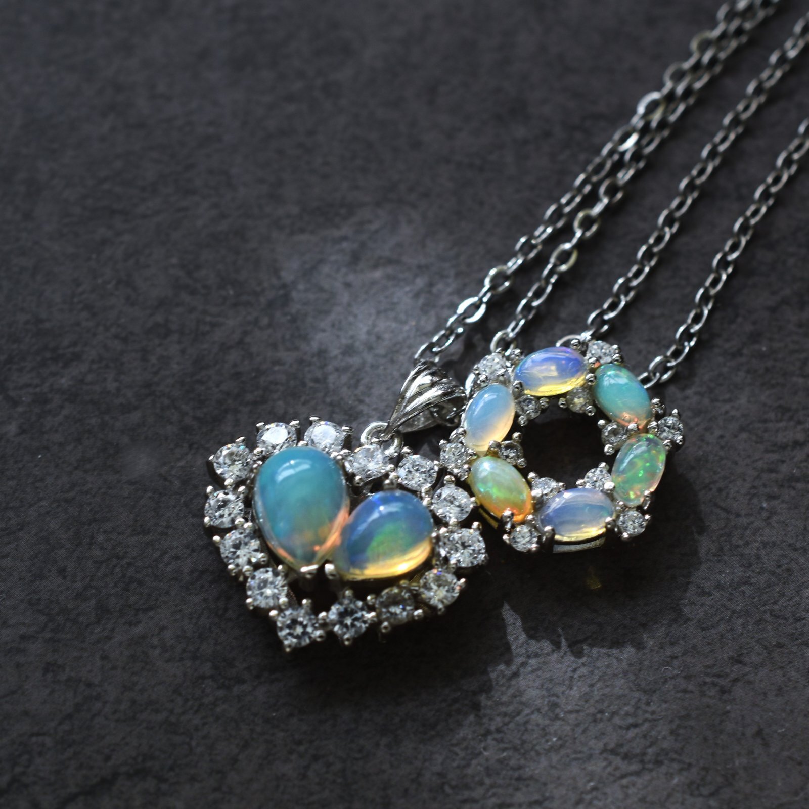 宝石質オパールを使用した贅沢なペンダントネックレス