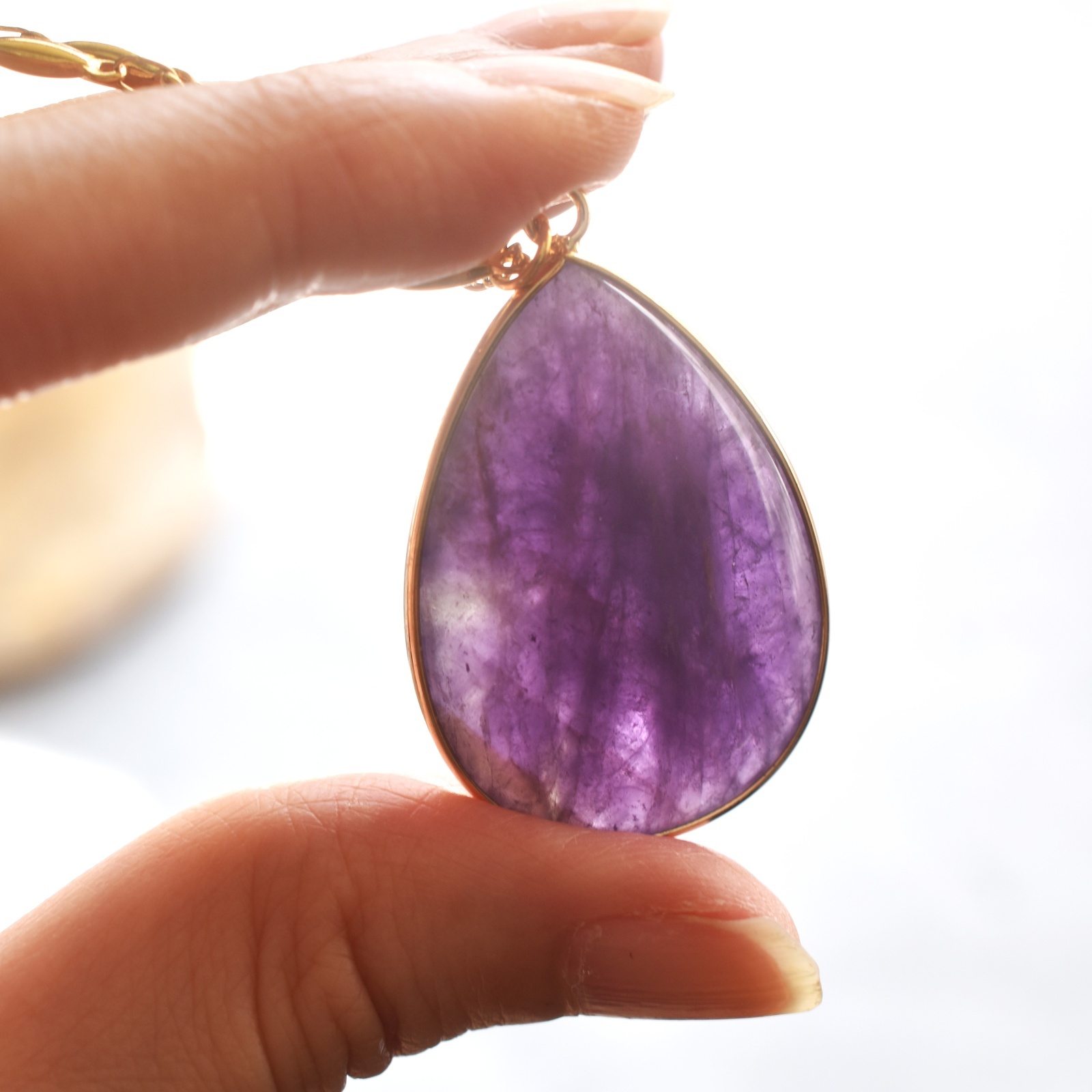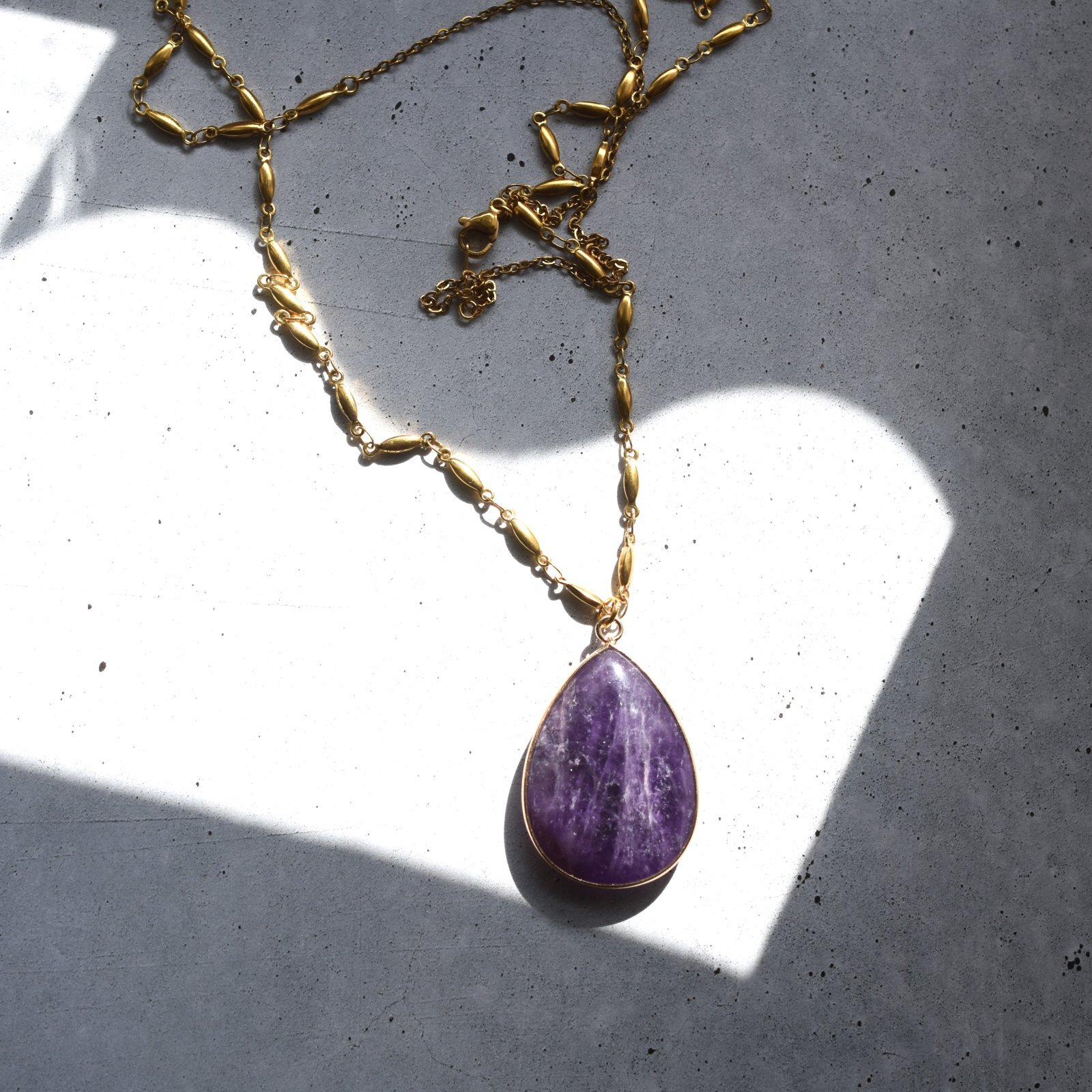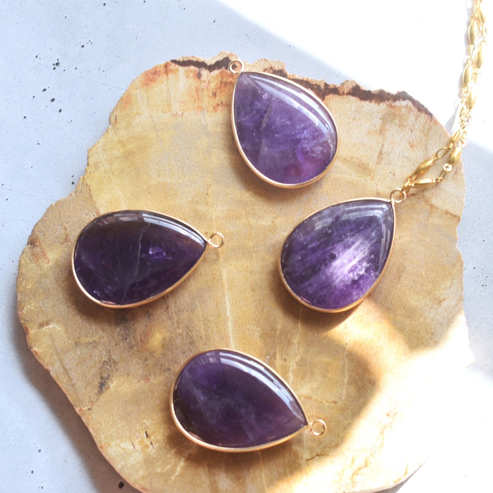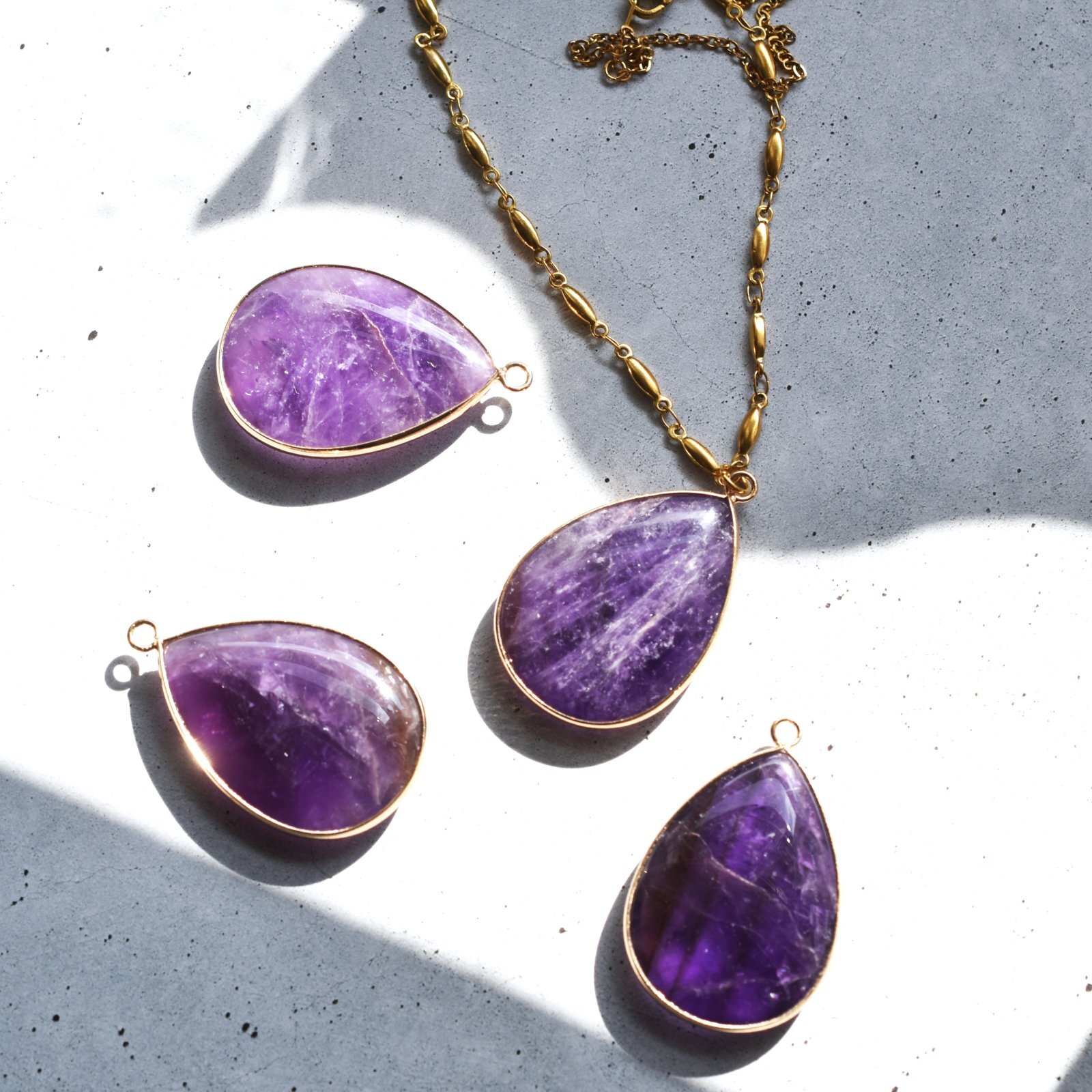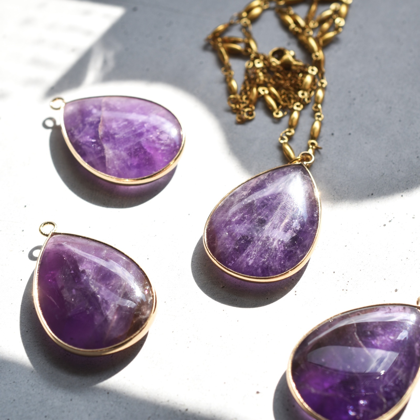 春の新作【限定数のみ】超大粒 原石の風合い アメジスト ペンダント サージカルステンレスネックレス [N2941]