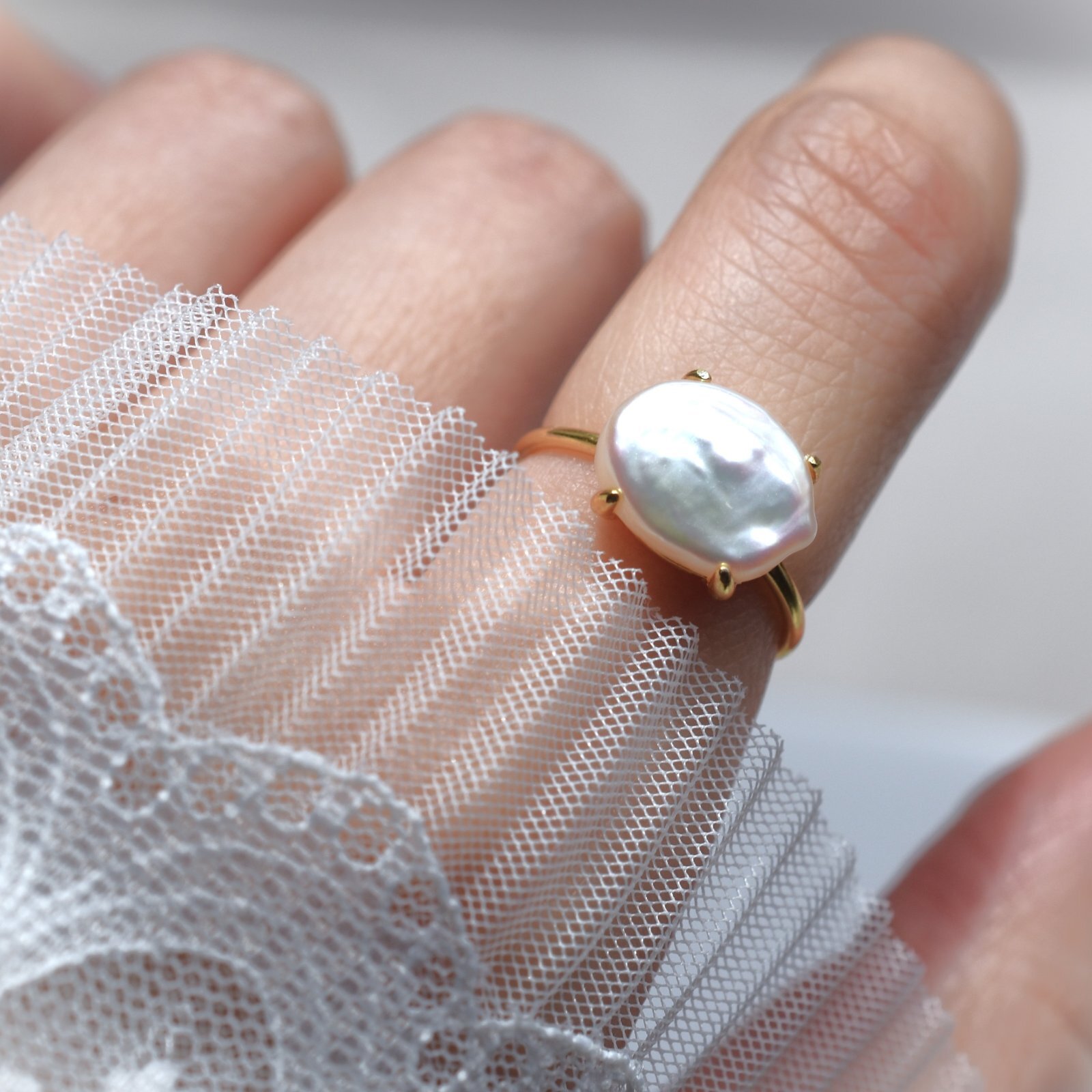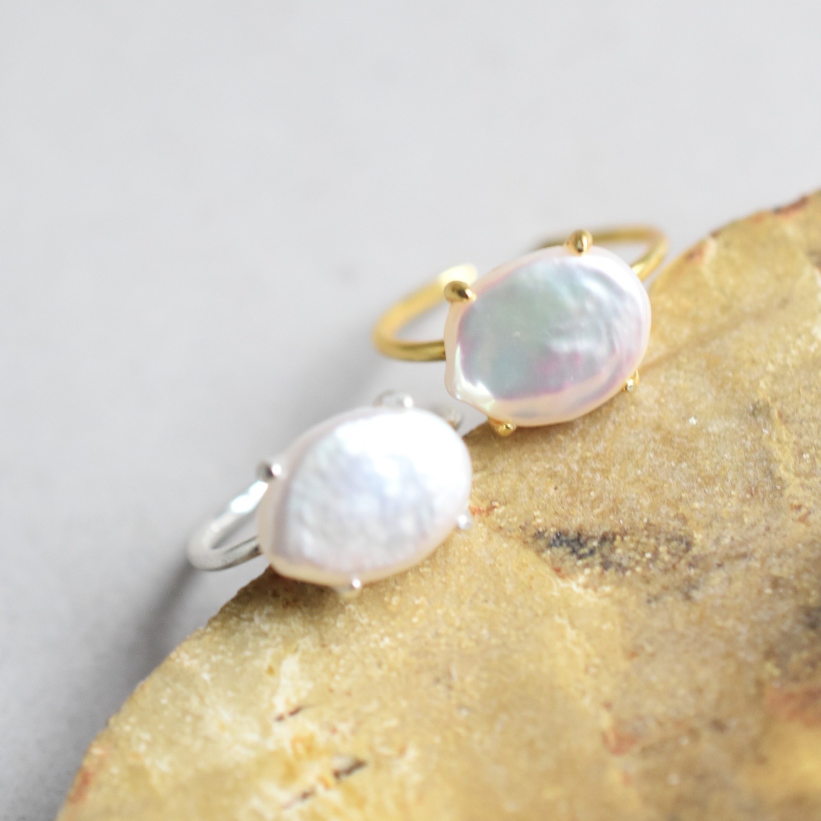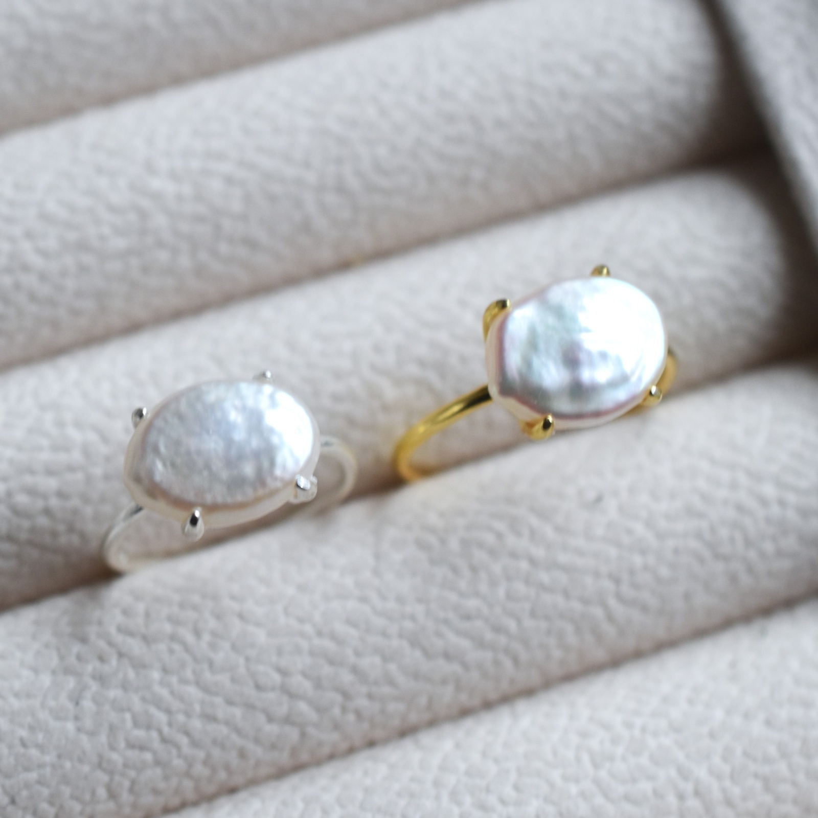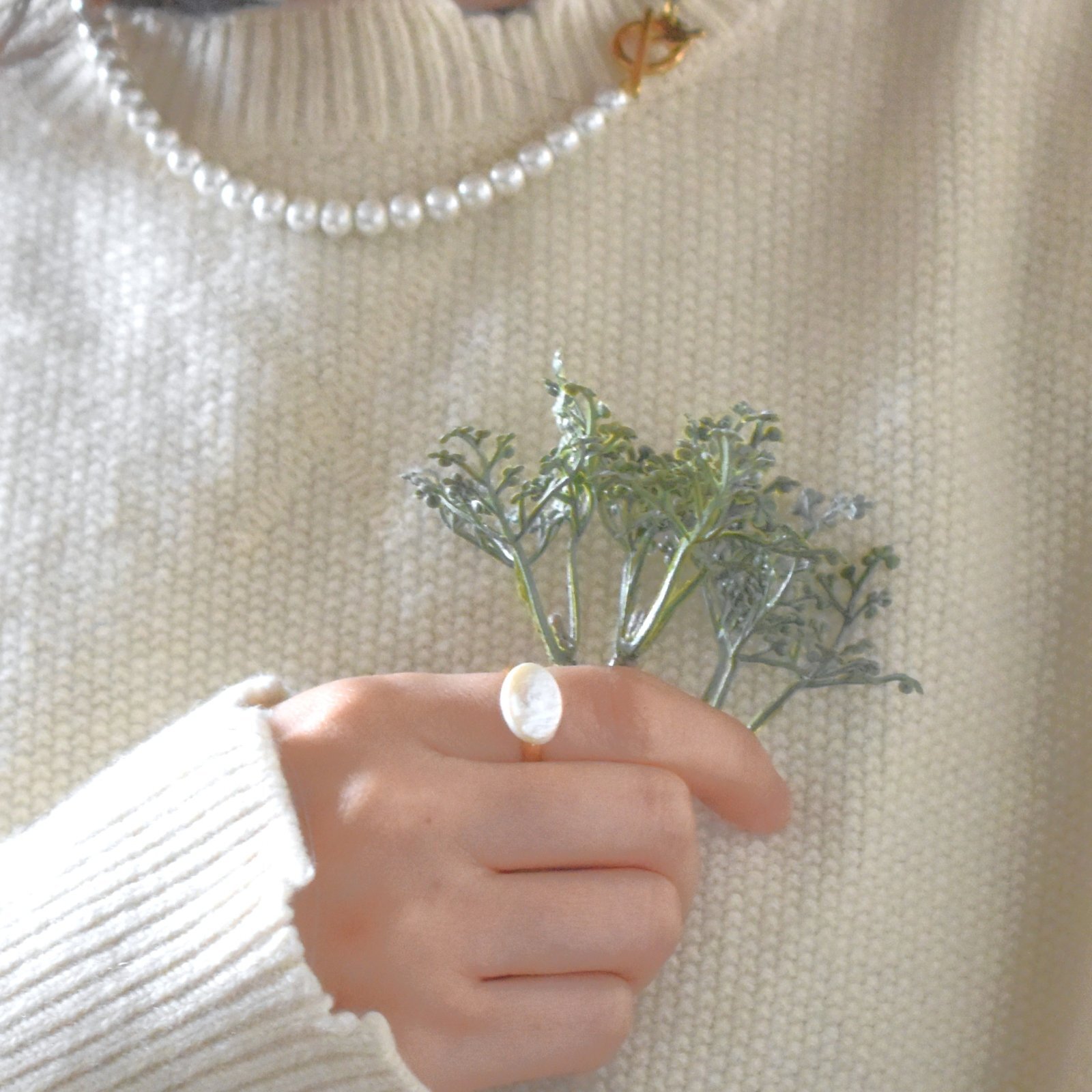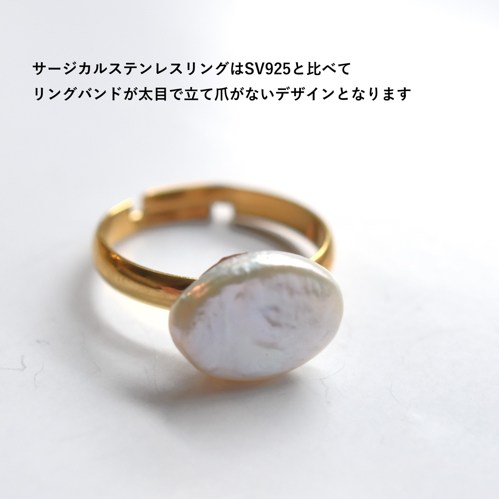春の新作【金属アレルギー対応】大粒 淡水パール オーバル SV・サージカルステンレス(指輪)