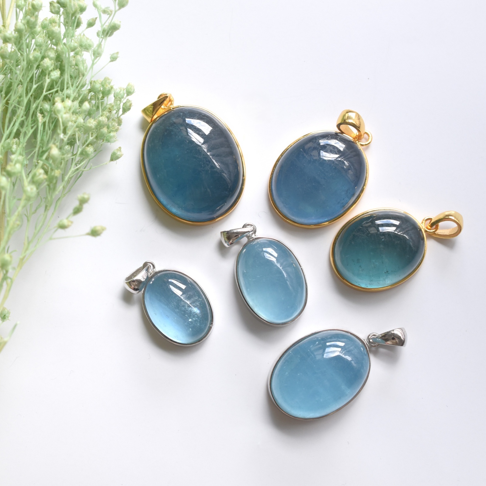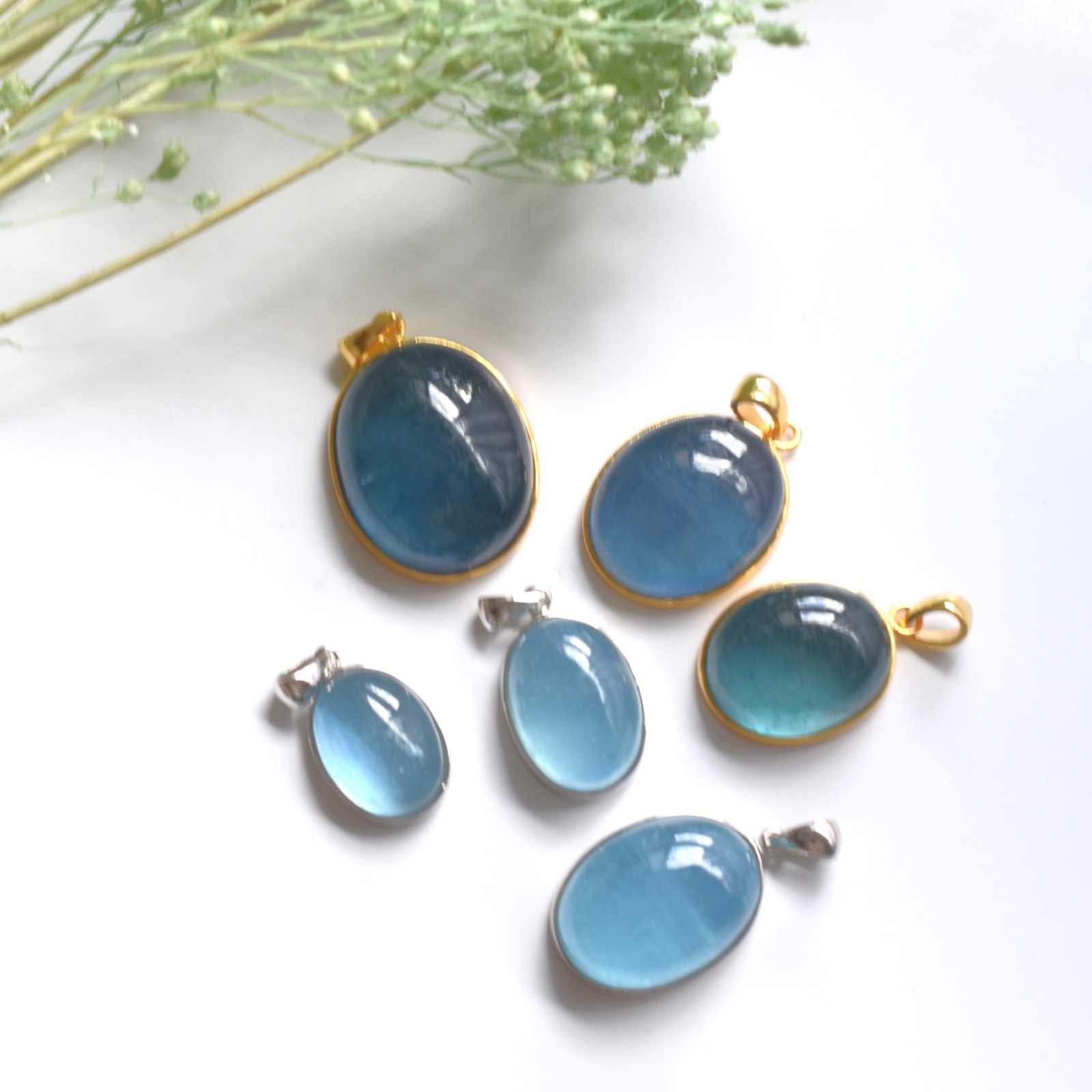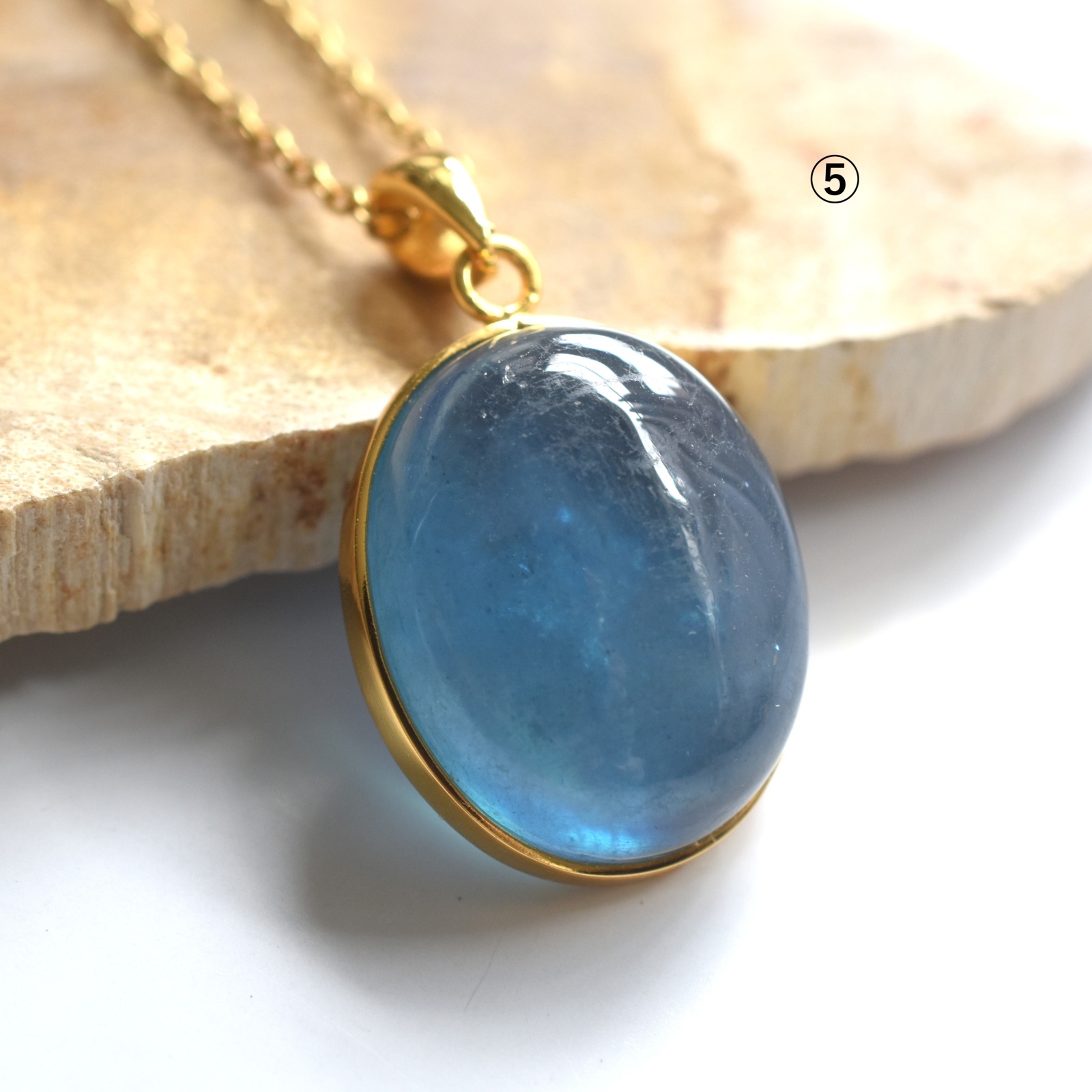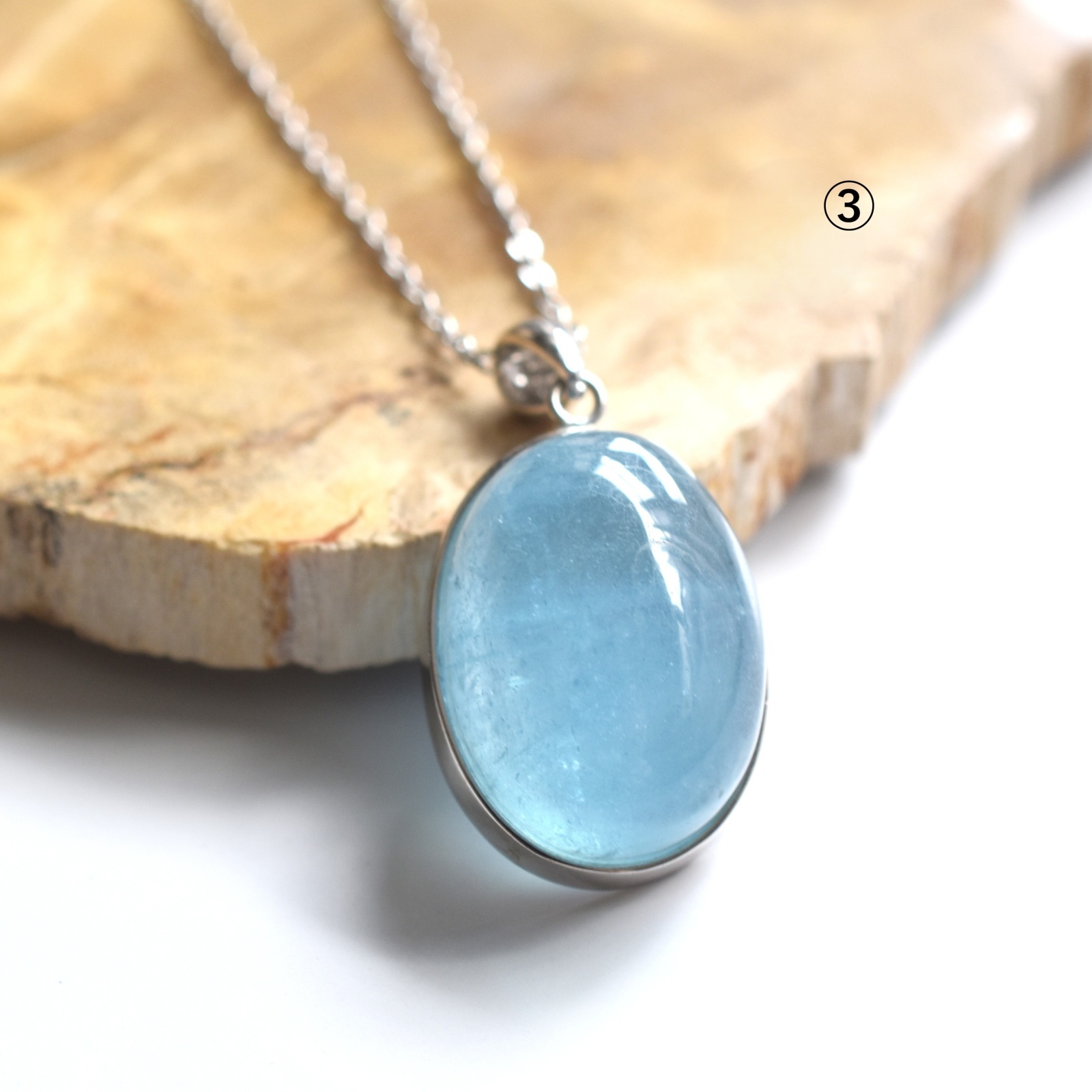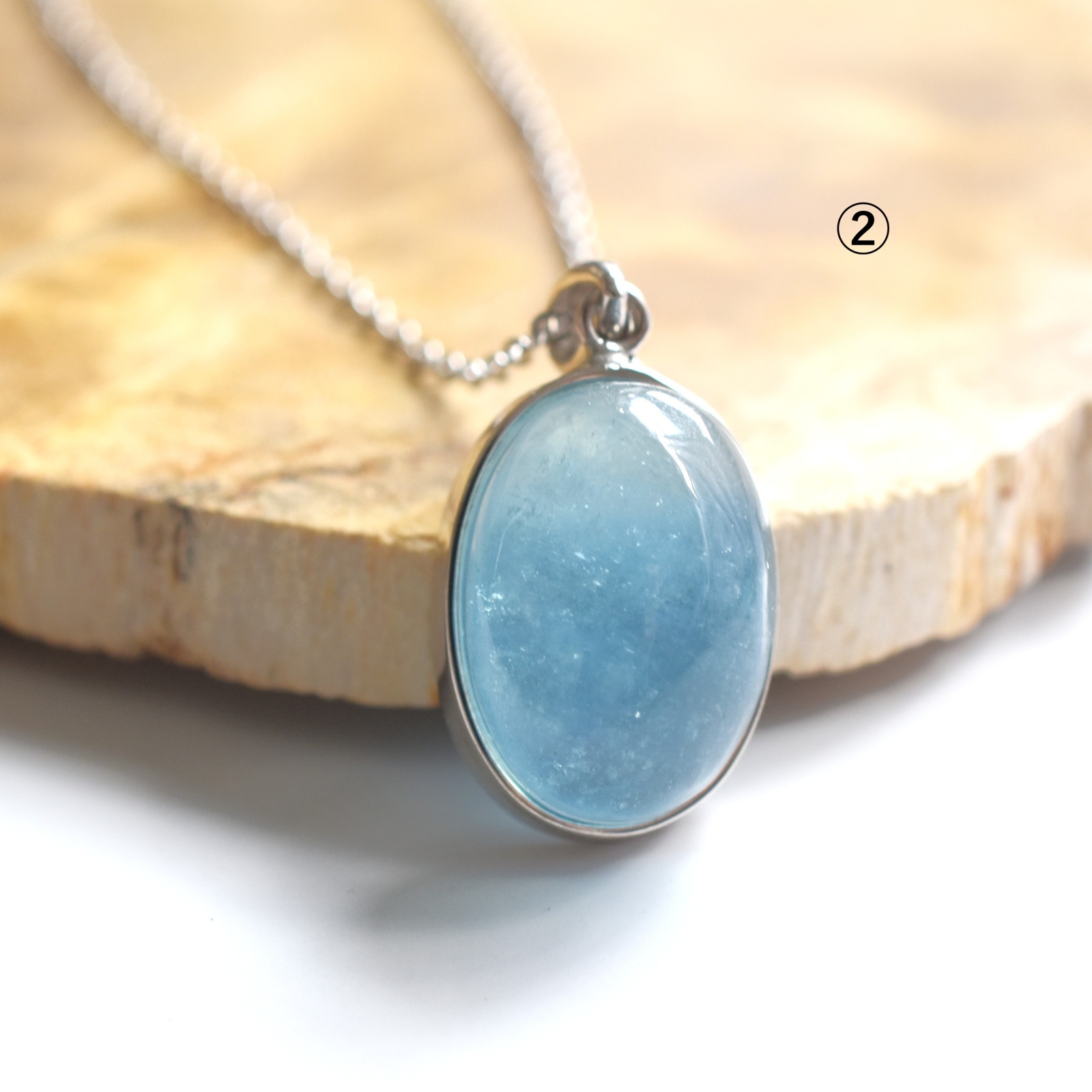 フレーム枠台のアクアマリンカボションネックレスのご紹介は