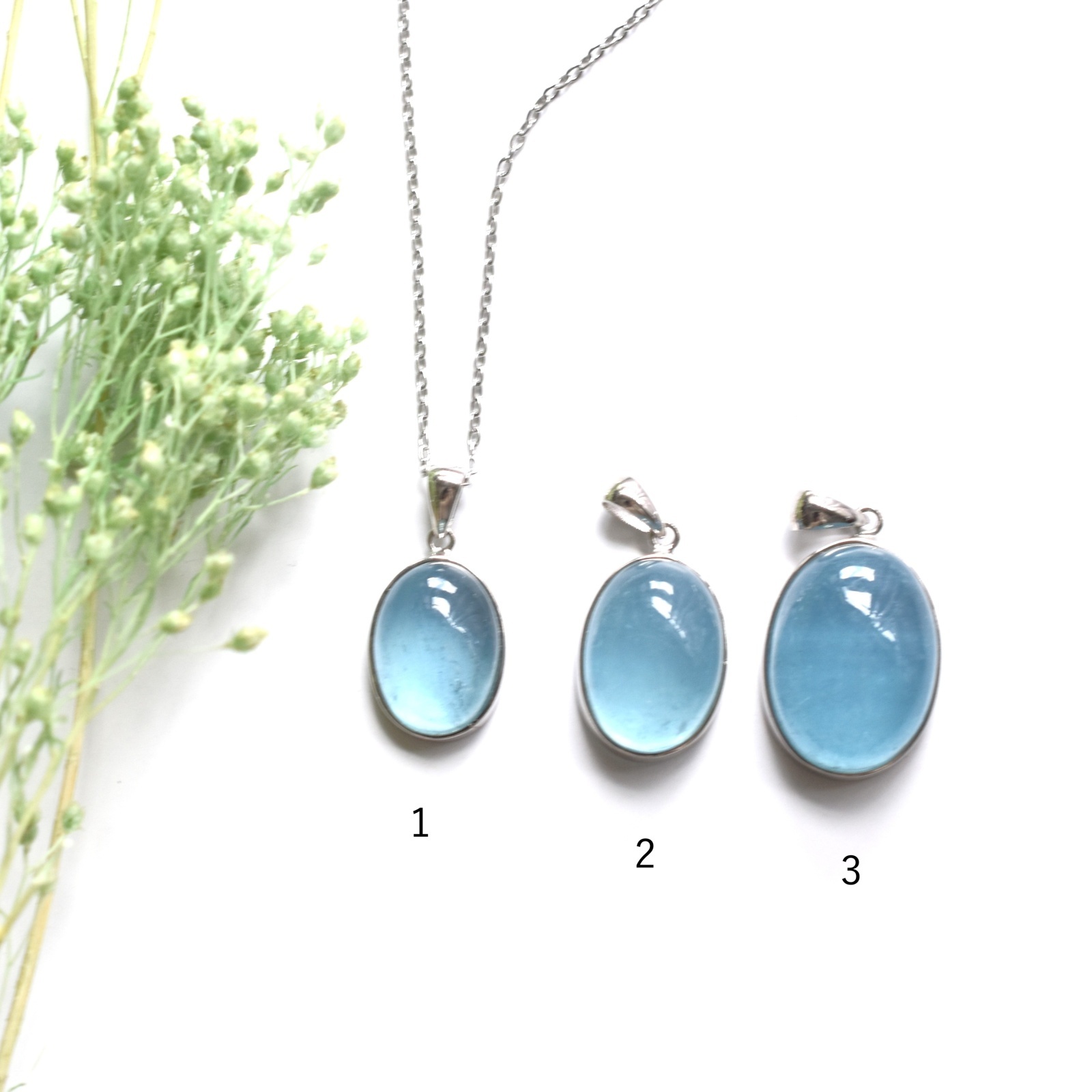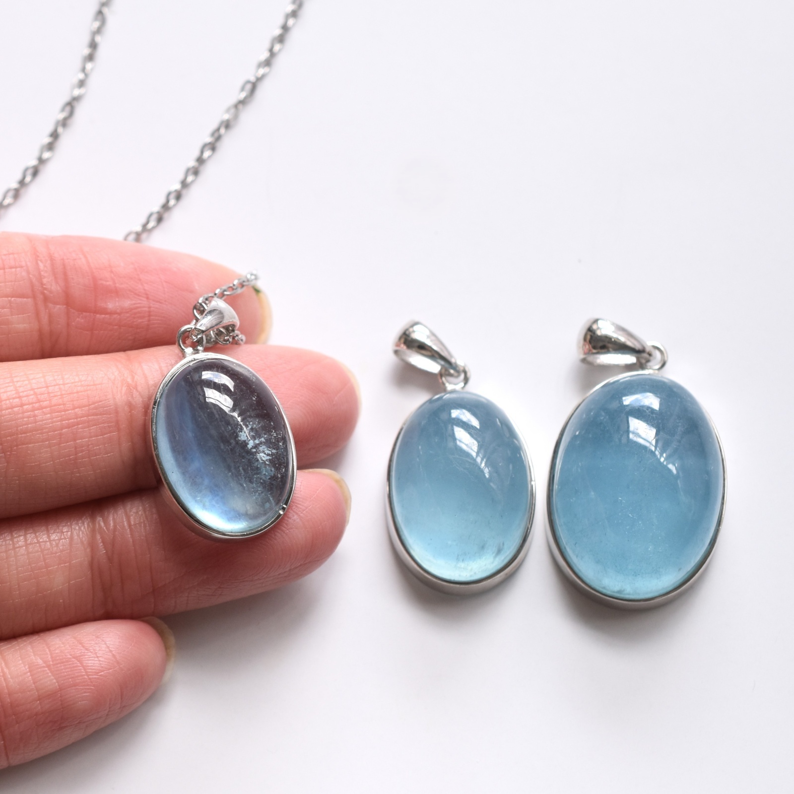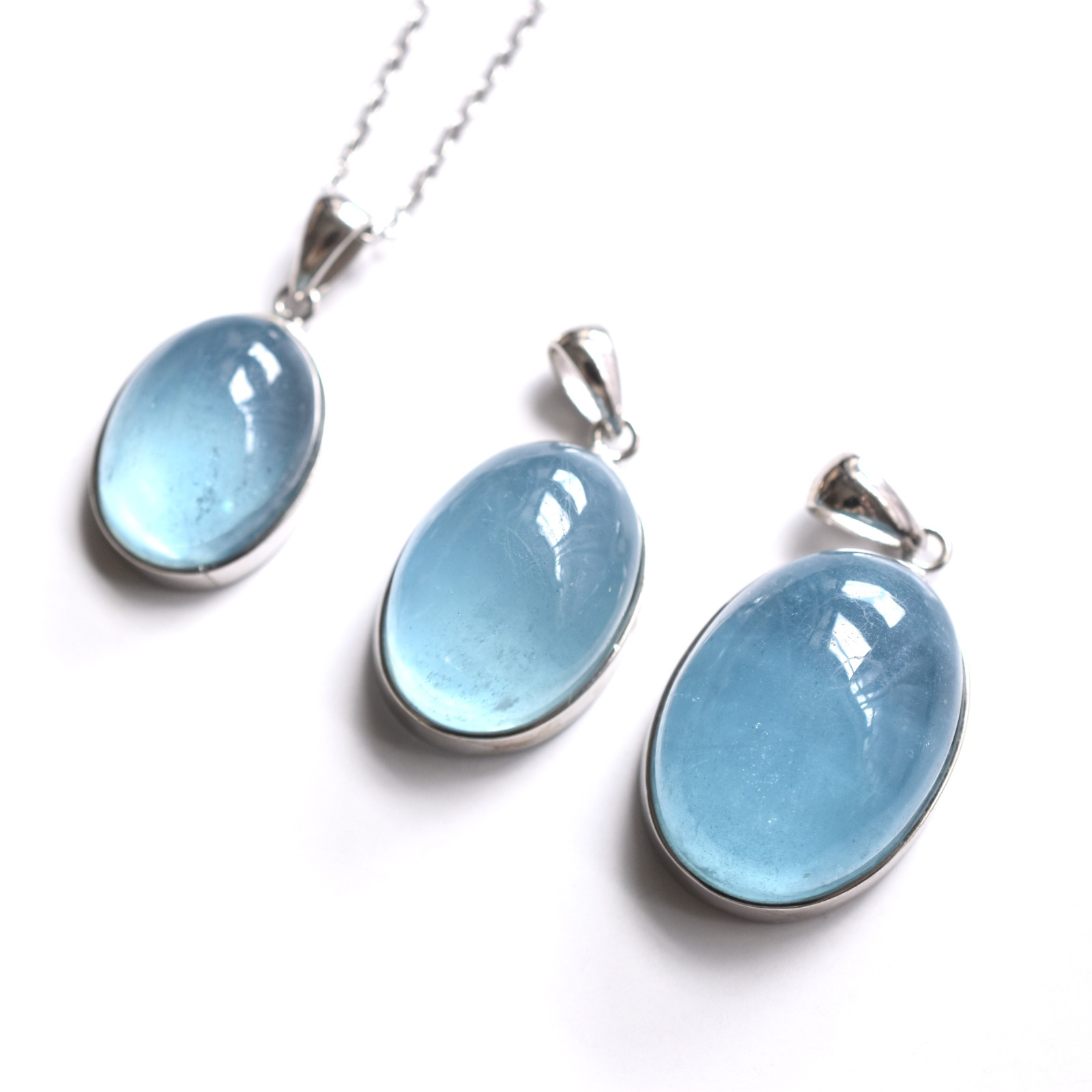 春の新作【選べる】大粒! サンタマリアカラー アクアマリン カボションペンダント サージカルステンレスネックレス60cm