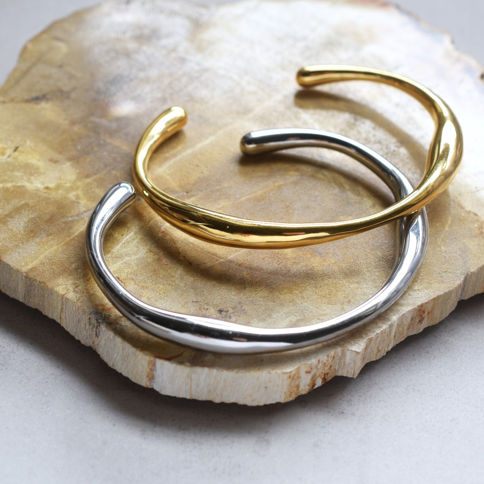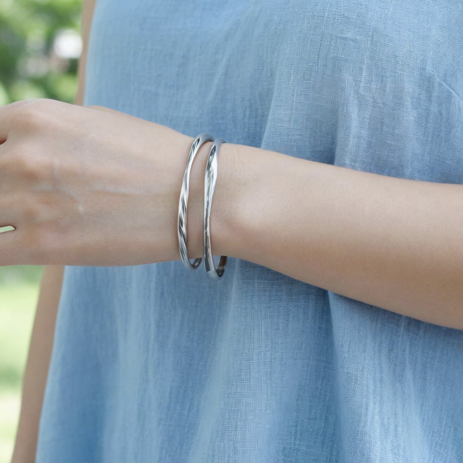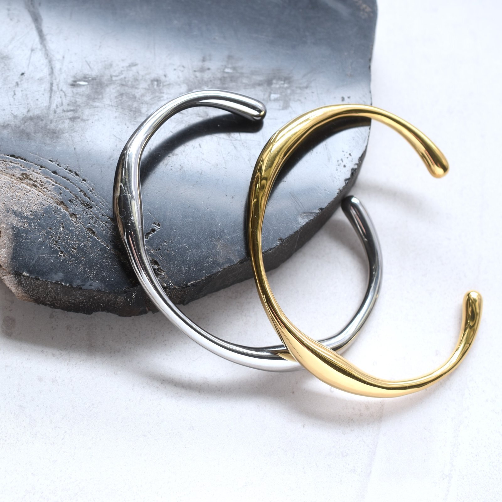 春の新作【汗のかく季節に!】ウェーブライン サージカルステンレス製 バングル・ブレスレット