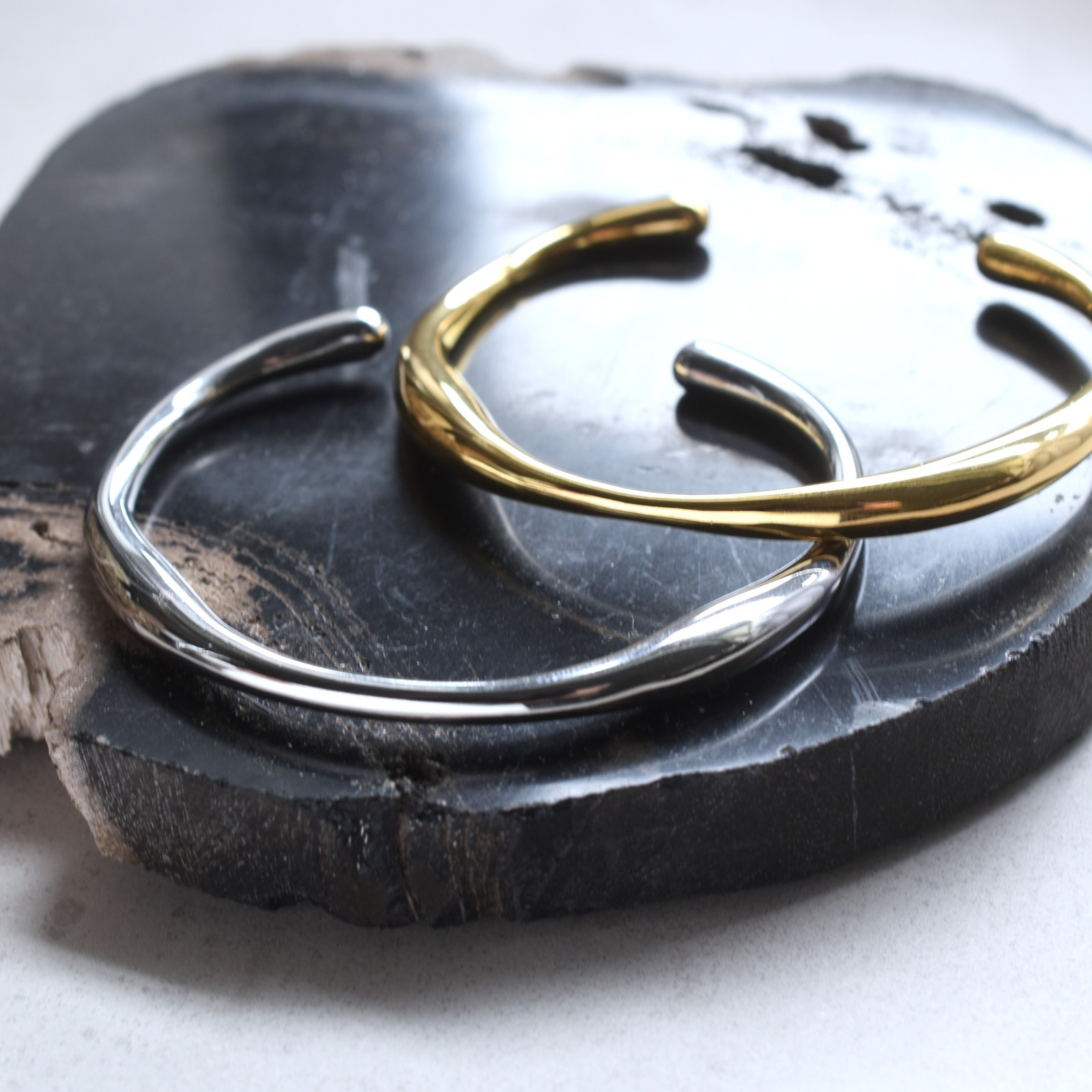 シンプルな流線形のオーバル型バングルです
