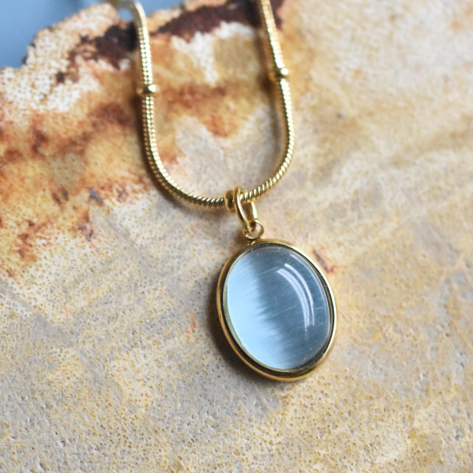 新カラー再入荷!【限定数】アクアマリンカラー ブルーキャッツアイクォーツ サージカルステンレス ネックレス
