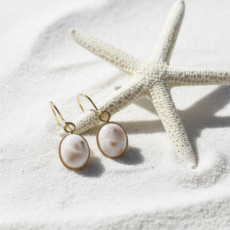 春の新作【金具選べる】桜色の海 トムソナイト(ピンクラリマー) カボション サージカルステンレスピアス [P1030]