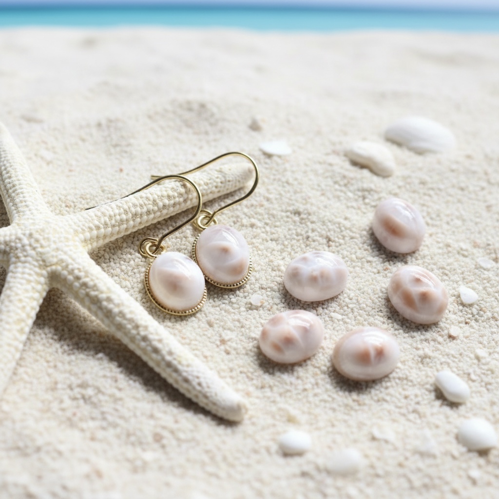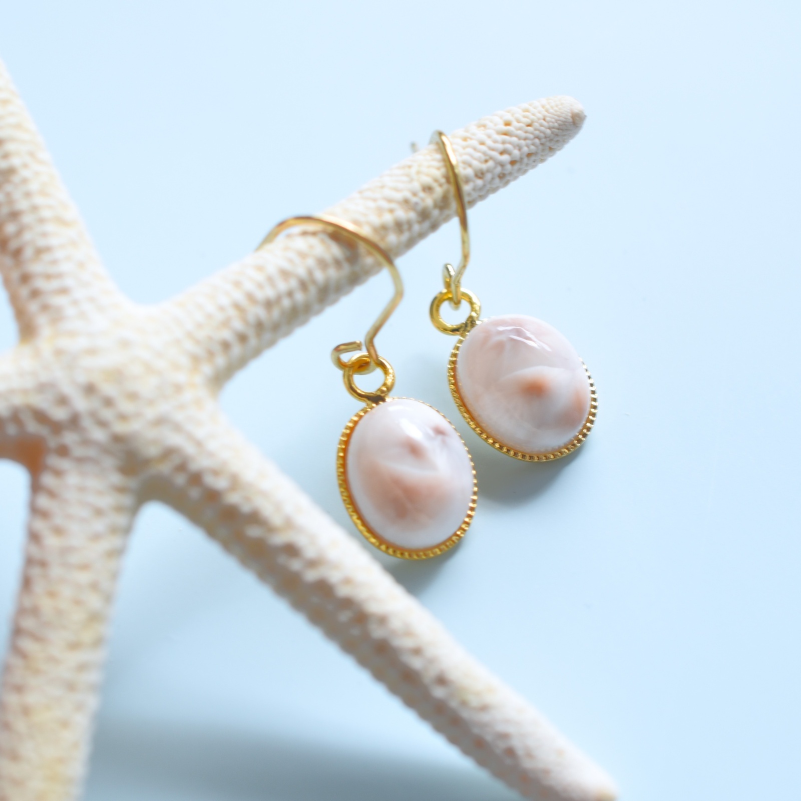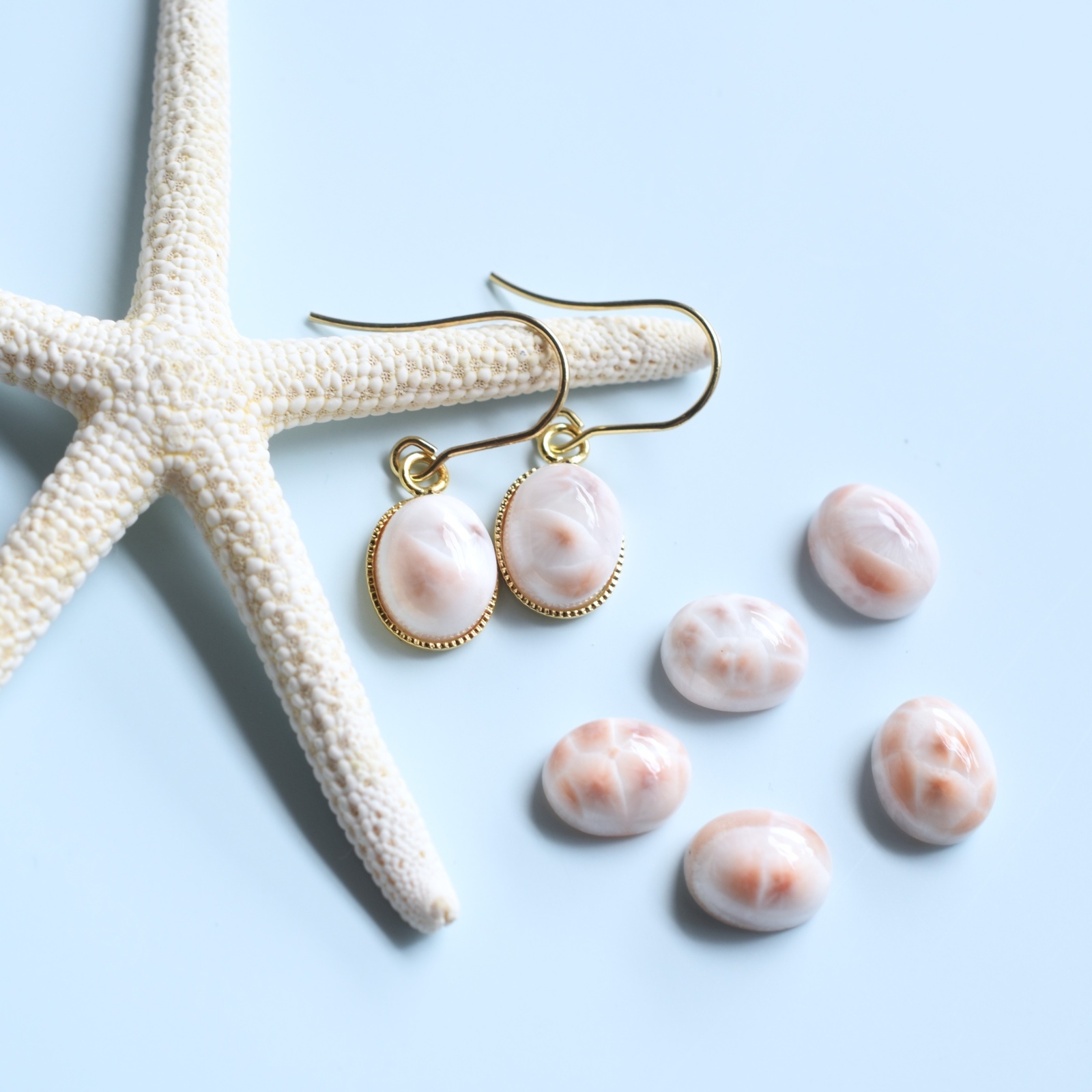 春の新作【金具選べる】桜色の海 トムソナイト(ピンクラリマー) カボション サージカルステンレスピアス