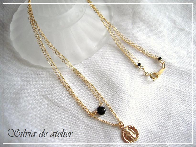 ブラックスピネル×マリアコイン14kgf2連ネックレス [N0281]