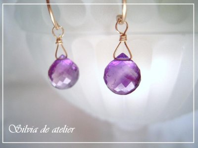 フープフックピアスにシンプルにつけた14kgfピアスです
