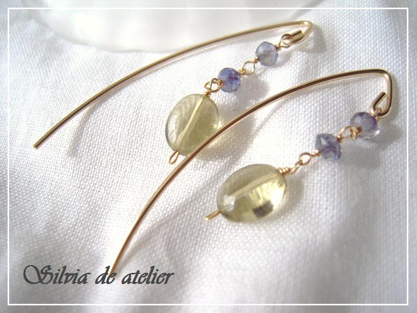 アイオライト×オリーブクォーツデザインピアス・Cylma [P0260]