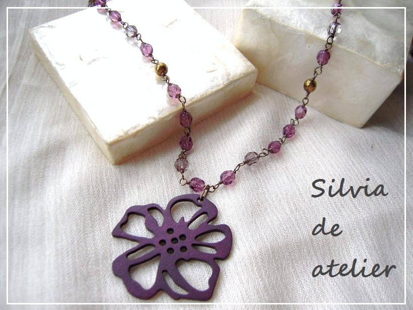 パープルポピーウッドパーツ ロングネックレス [N0371]