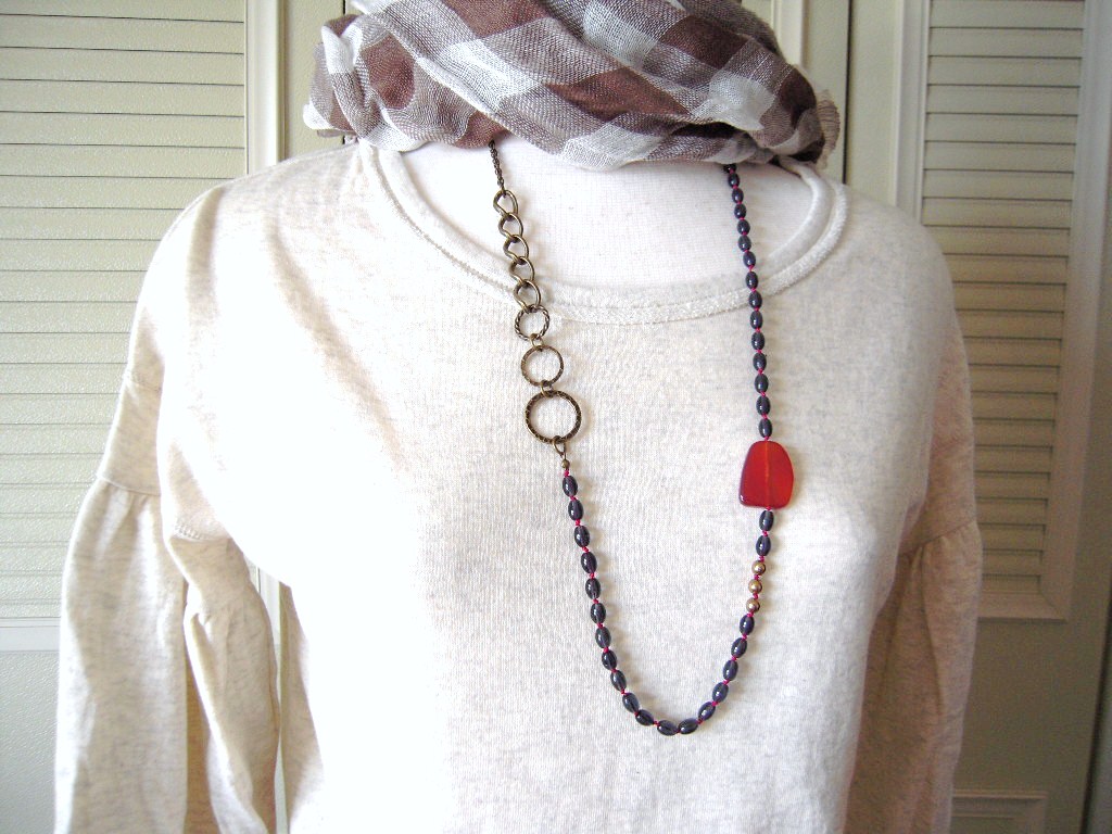 カーネリアン×チェコビーズ デザインロングネックレス [N0377]