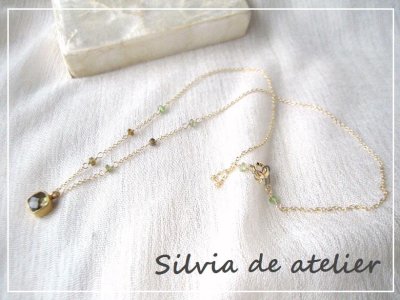 オリーブクォーツ 14kgfステーションネックレス [N0289]